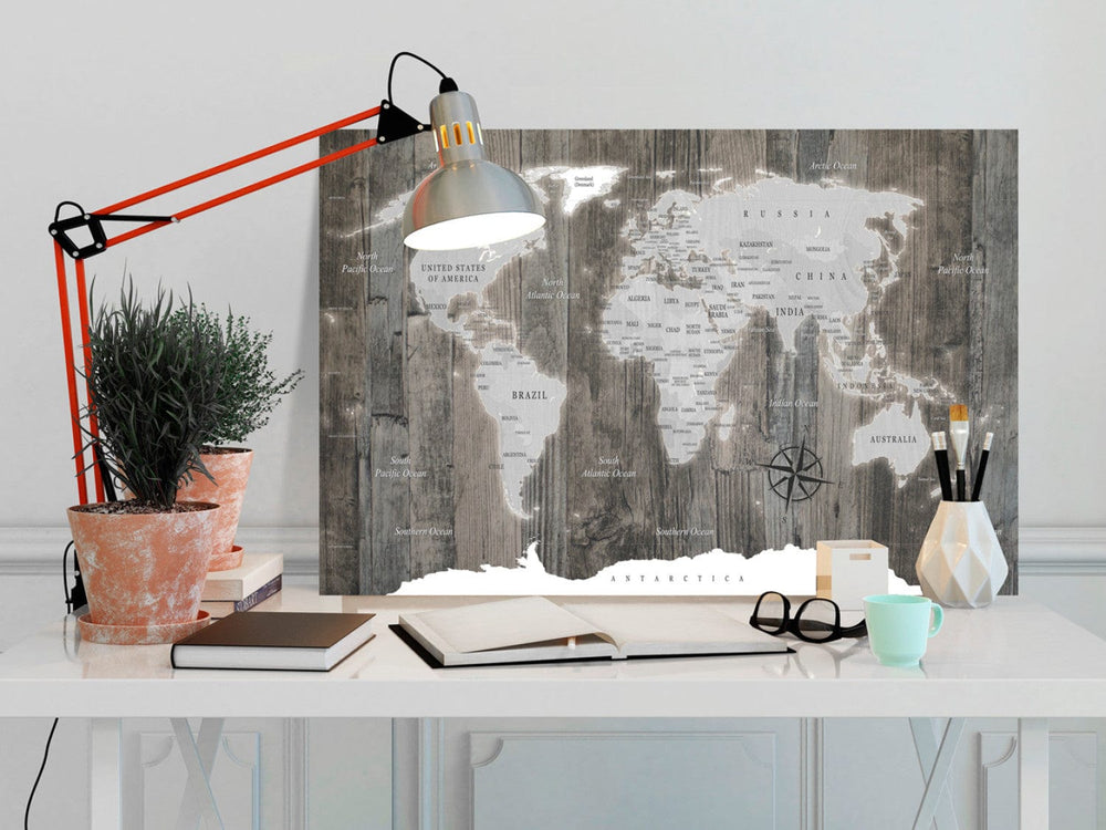Glezna - Pasaules karte uz pelēka koka: Koka pasaule, 91926 G-ART.