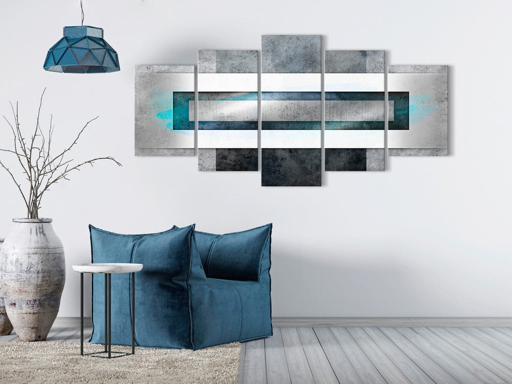 Glezna ar mūsdienīgu dizainu - Taisnstūris - tirkīzā un pelēkā krāsā G-ART