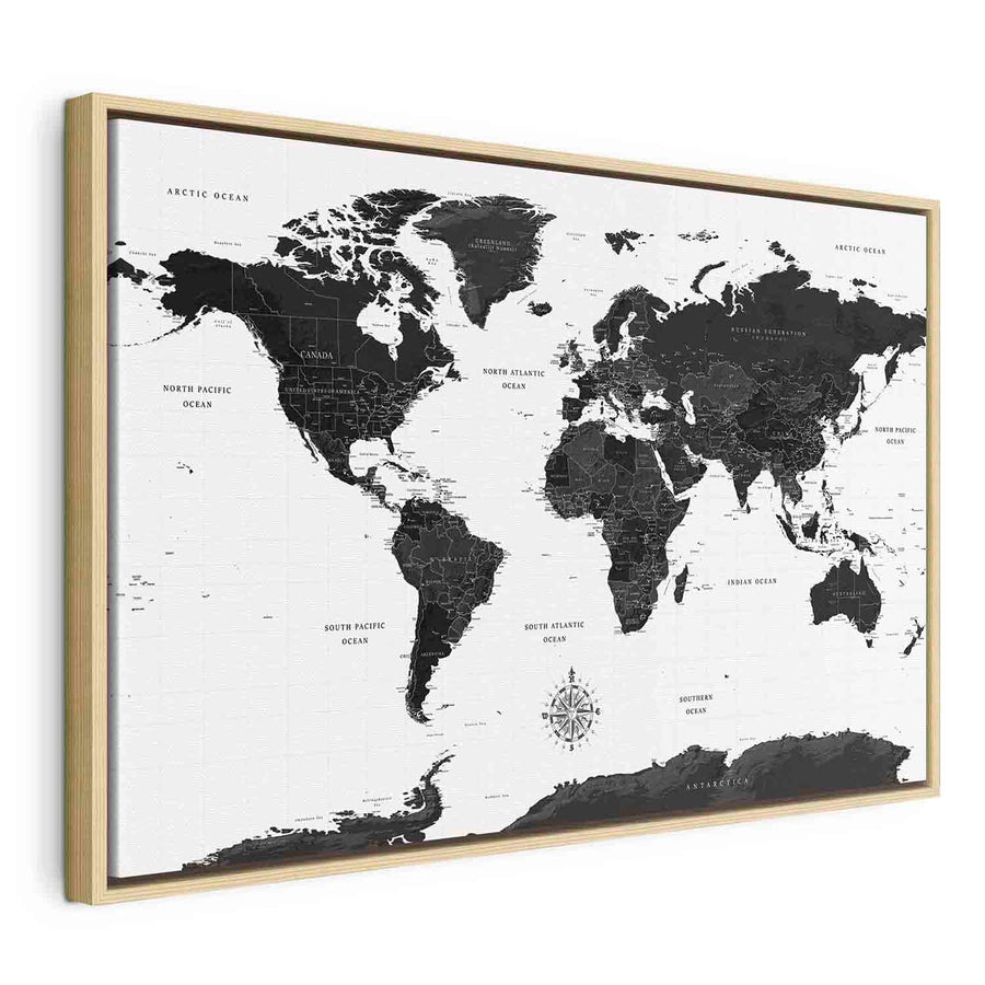 Glezna koka rāmī viesistabai - Melnbaltā pasaules karte G ART
