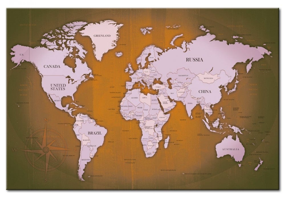 Glezna - Pasaules karte: Jauni virzieni, uz pelēka koka, 90260 G-ART.