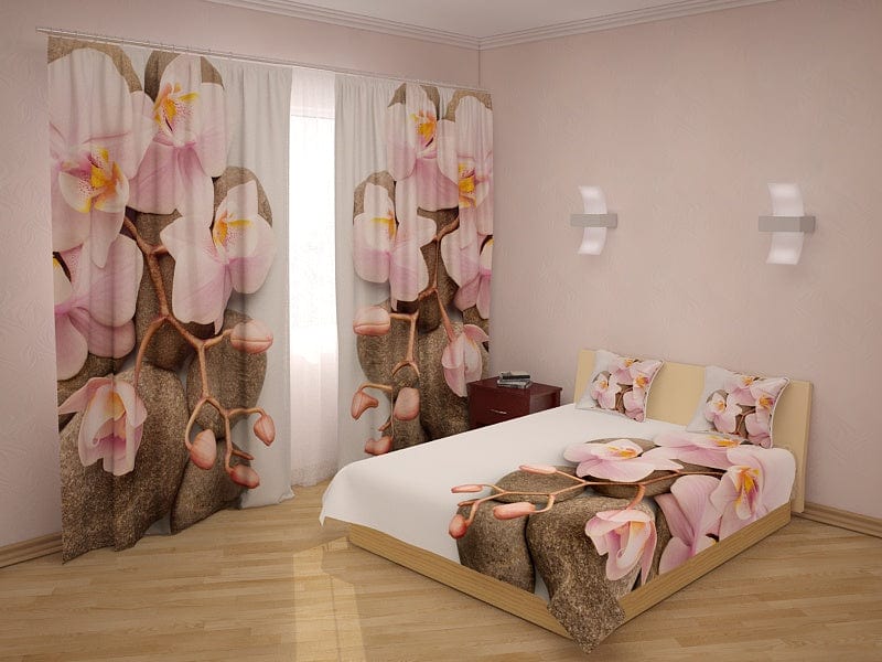 Gultas pārklājs ar orhidejām - Palmu zars un orhidejas - guļamistabai Digital Textile