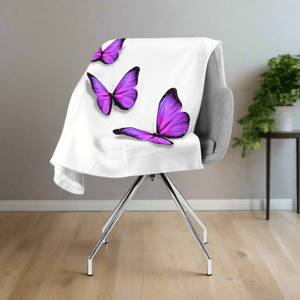 Flīsa pleds ar violetiem taureņiem