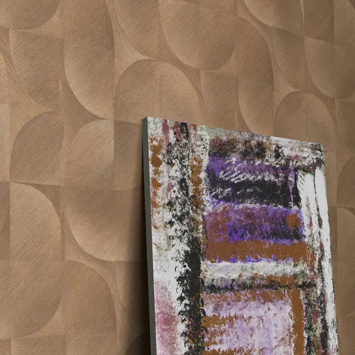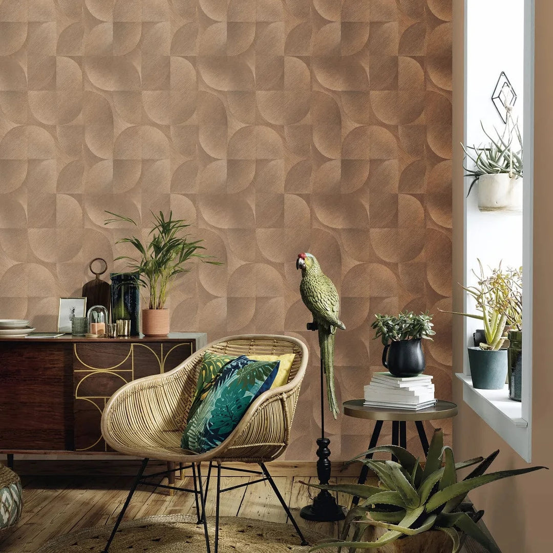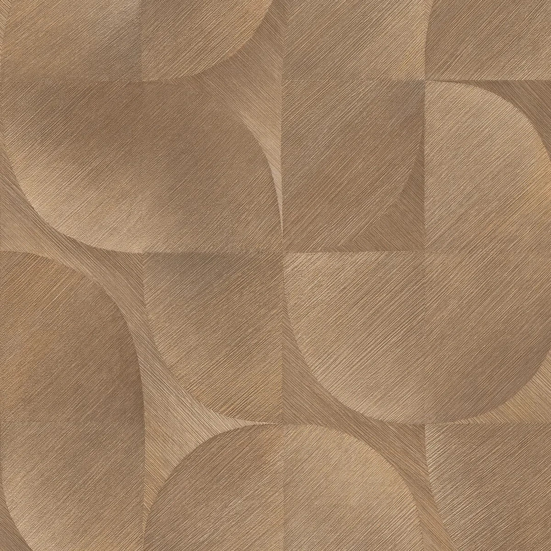 Flizelīna tapetes ar grafisku ornamentu dzeltenbrūnā krāsā. Sildošs tonis un matēts pārklājums ar ornamentu piešķir telpai raksturu. Ražotājs – Erismann (Vācija). Izmērs 0.53x10 m.