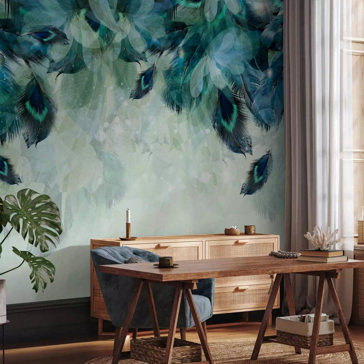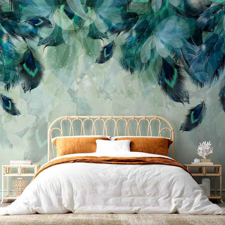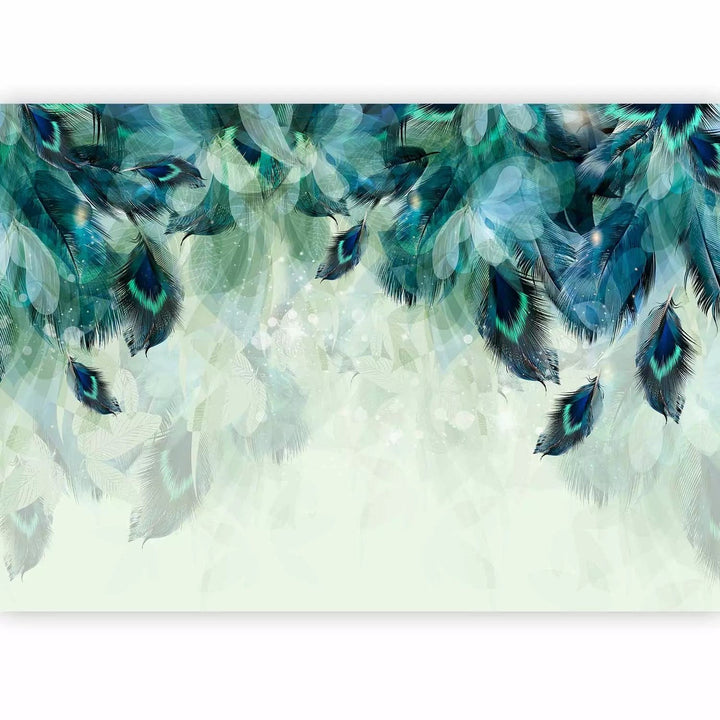 Fototapetes ar spalvām uz tirkīza fona - Smaragda spalvas, 136333