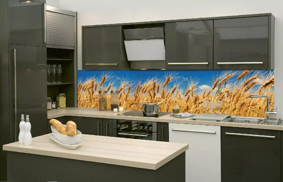 Fototapetes virtuvei ar lamināciju, pašlīmējošas plēve un flizelīns - Kviešu lauks II (260x60 cm)
