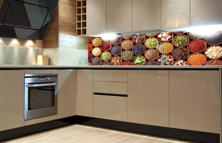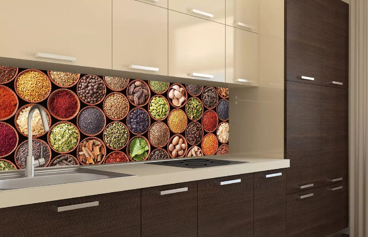 Fototapetes virtuvei ar lamināciju, pašlīmējošas plēve un flizelīns - Garšvielu trauki (180x60 cm)