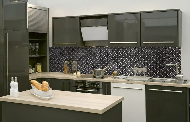 Fototapetes virtuvei ar lamināciju, pašlīmējošas plēve un flizelīns - Metāla platforma (260x60 cm)
