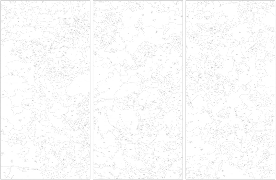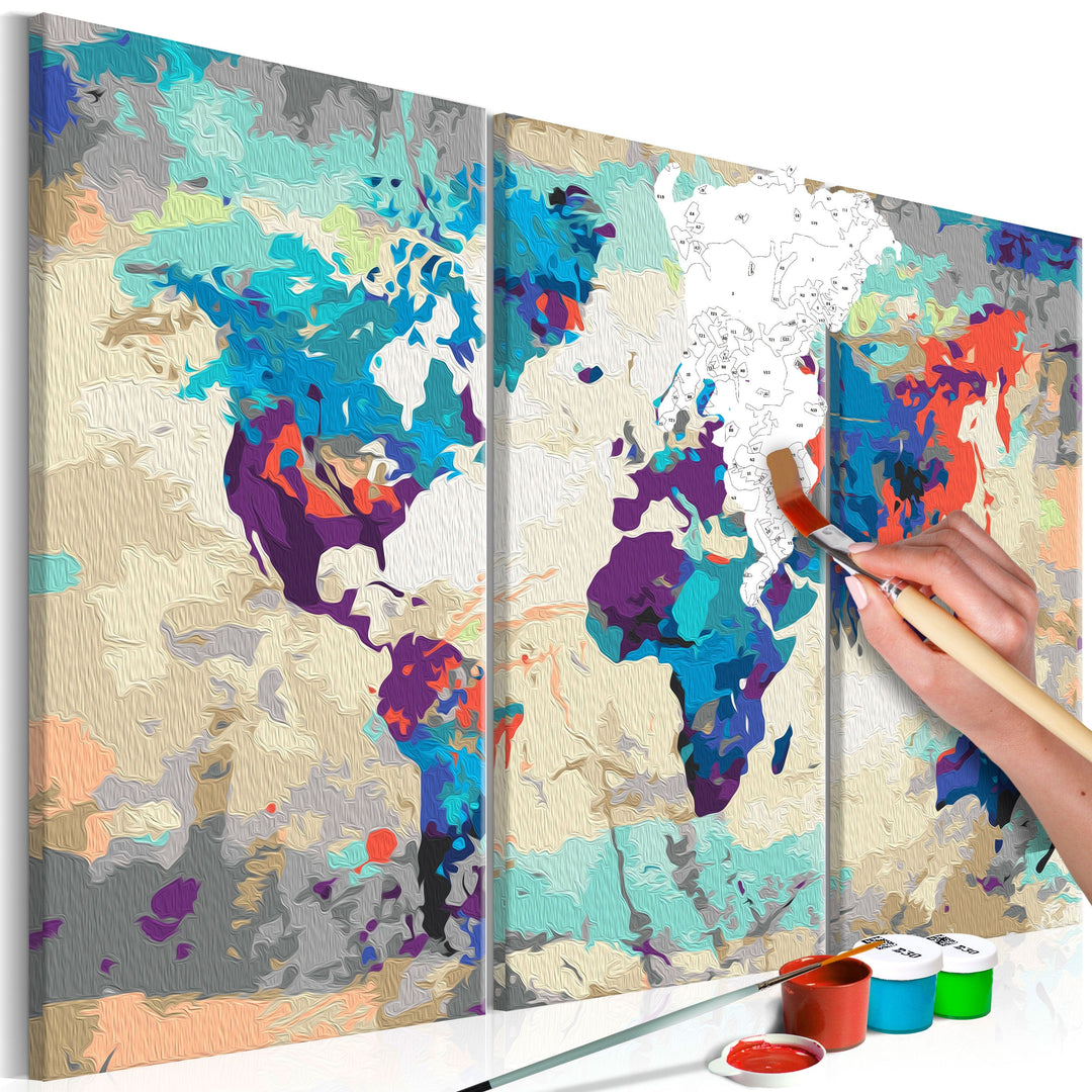 Kanva uz audekla "izkrāso pēc cipariem" - Pasaules karte (zila un sarkana) 3-daļīga (50x40 cm)