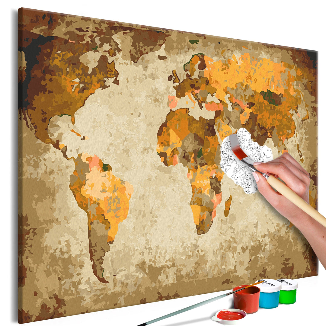 Kanva uz audekla "izkrāso pēc cipariem" - Brown World Map 50x40 cm