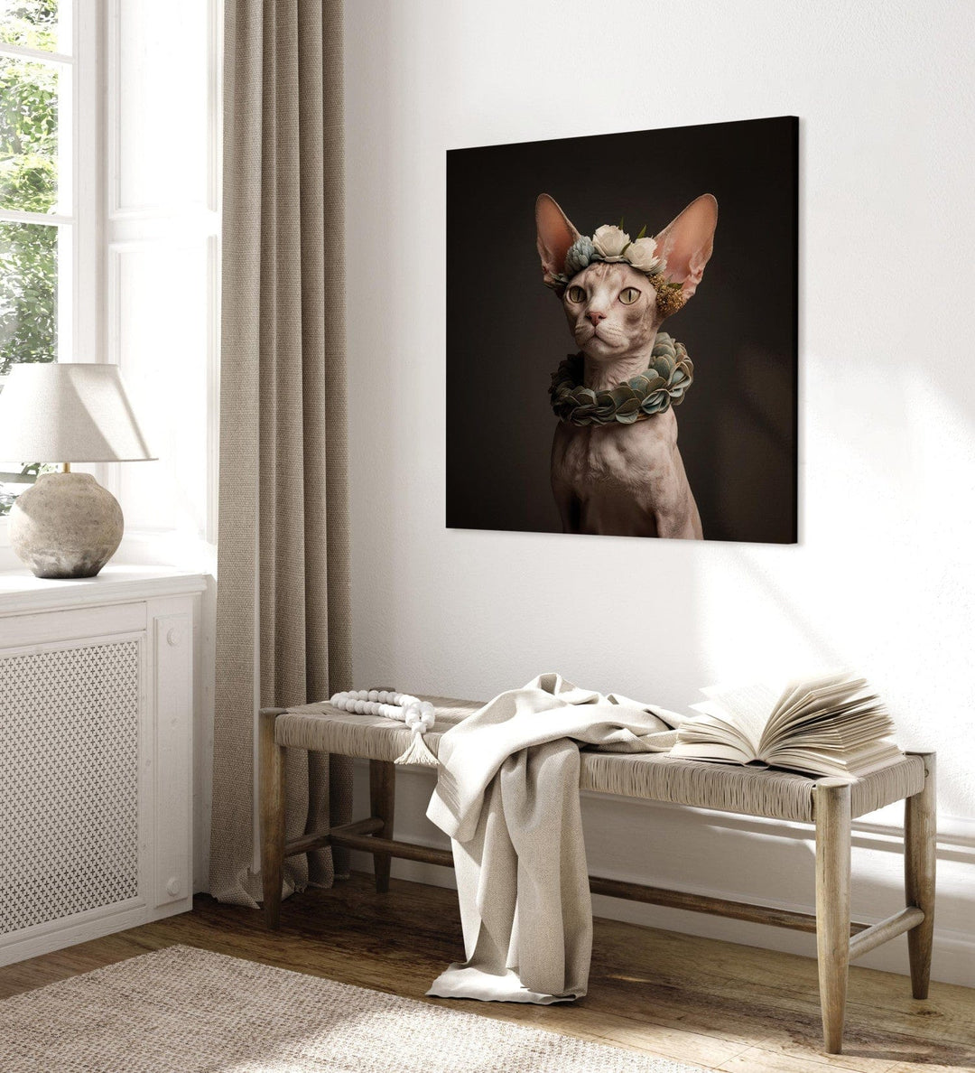 Kanva - Sfinksa kaķa portrets ar garām ausīm un rotājumiem, 150136