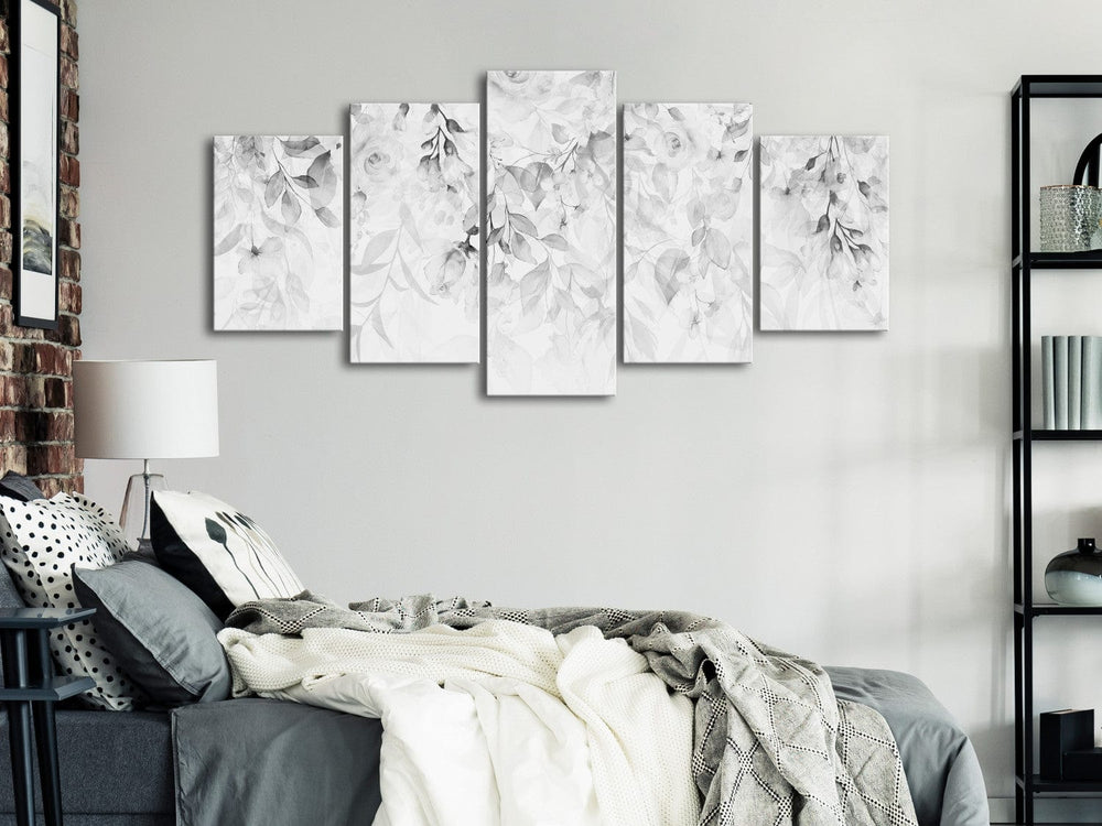 Kanva ar melnam lapām uz balta - Rožu ūdenskritums, (x 5), 150082