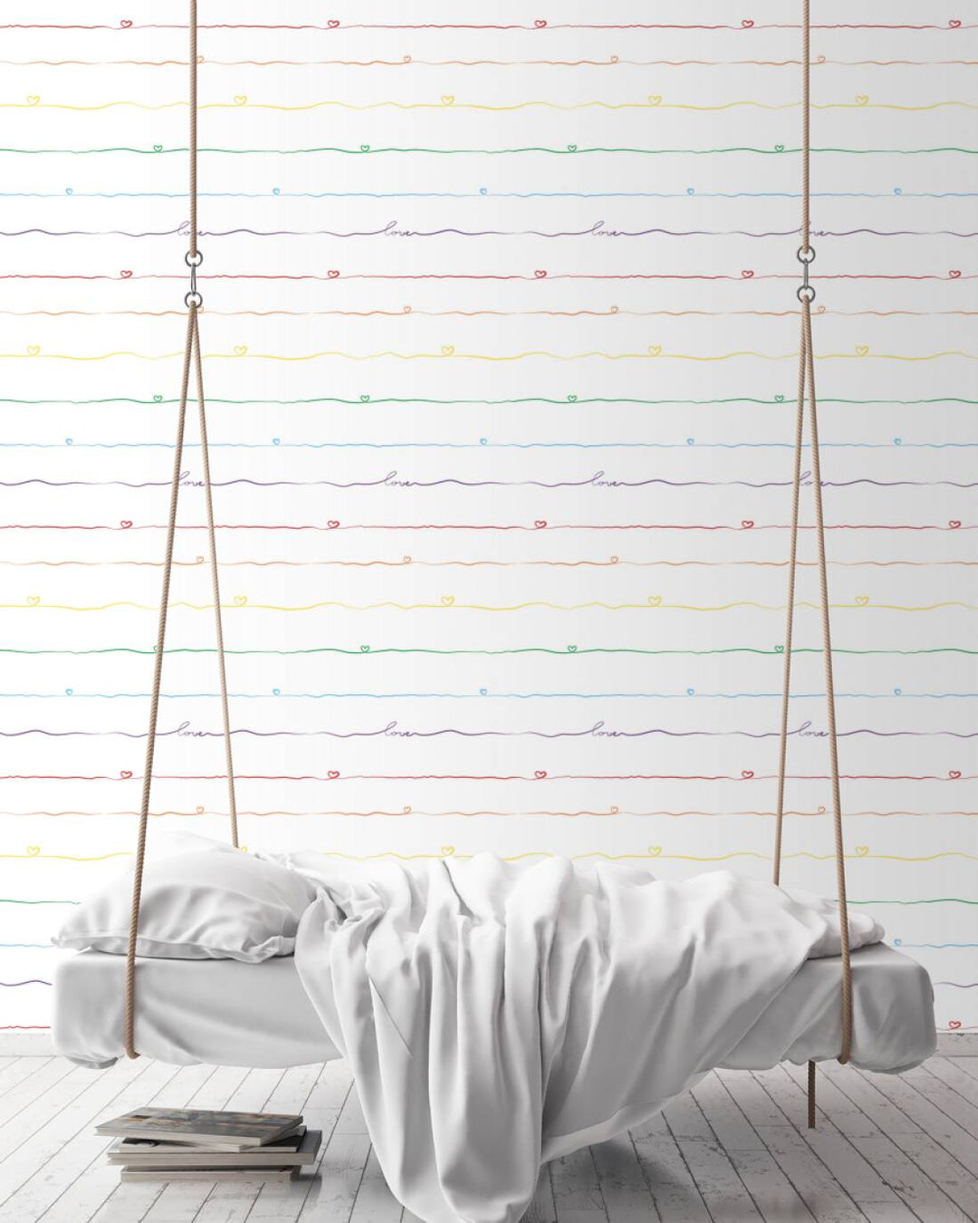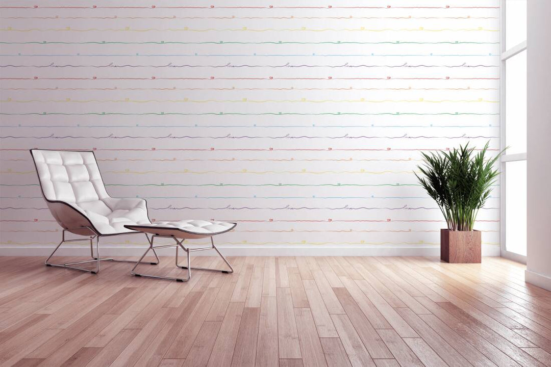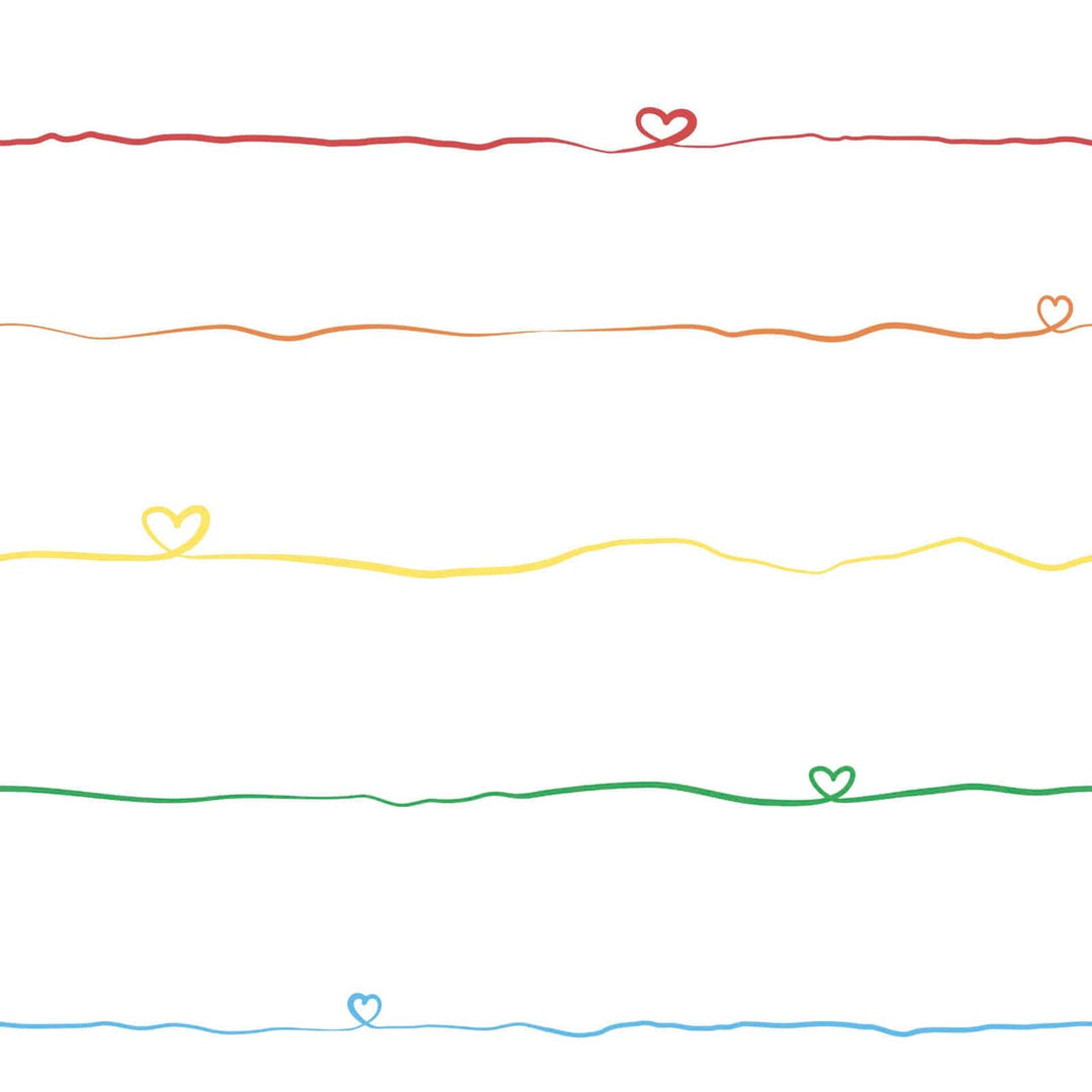 Svītrainas bērnistabas tapetes ar sirsniņām, daudzkrāsainas, 1350731, Bez PVC 🌿