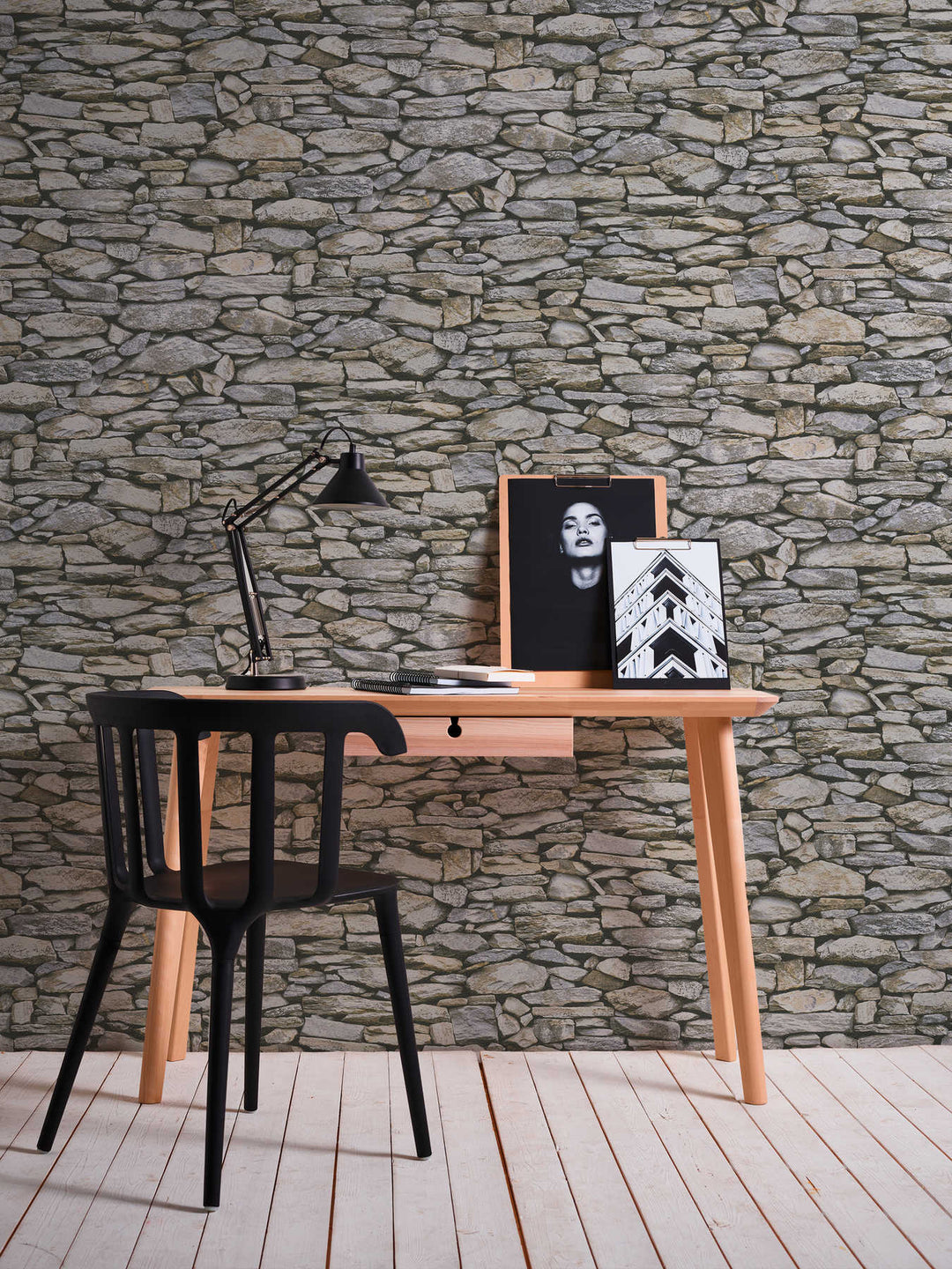 Papīra tapetes ar akmens rakstu tumši pelēkā krāsā, 3517372