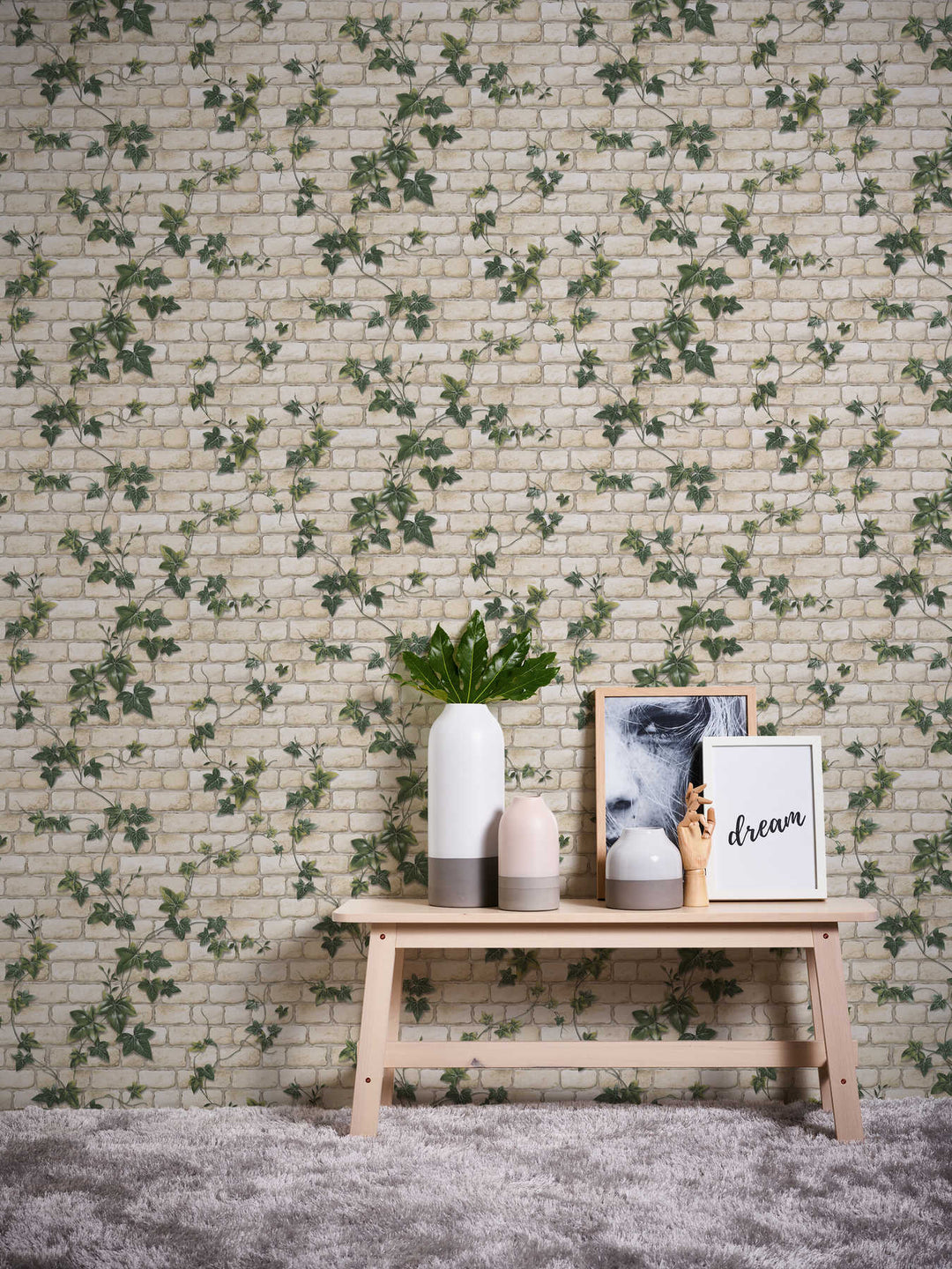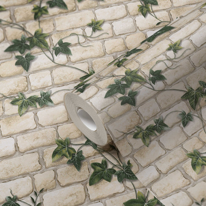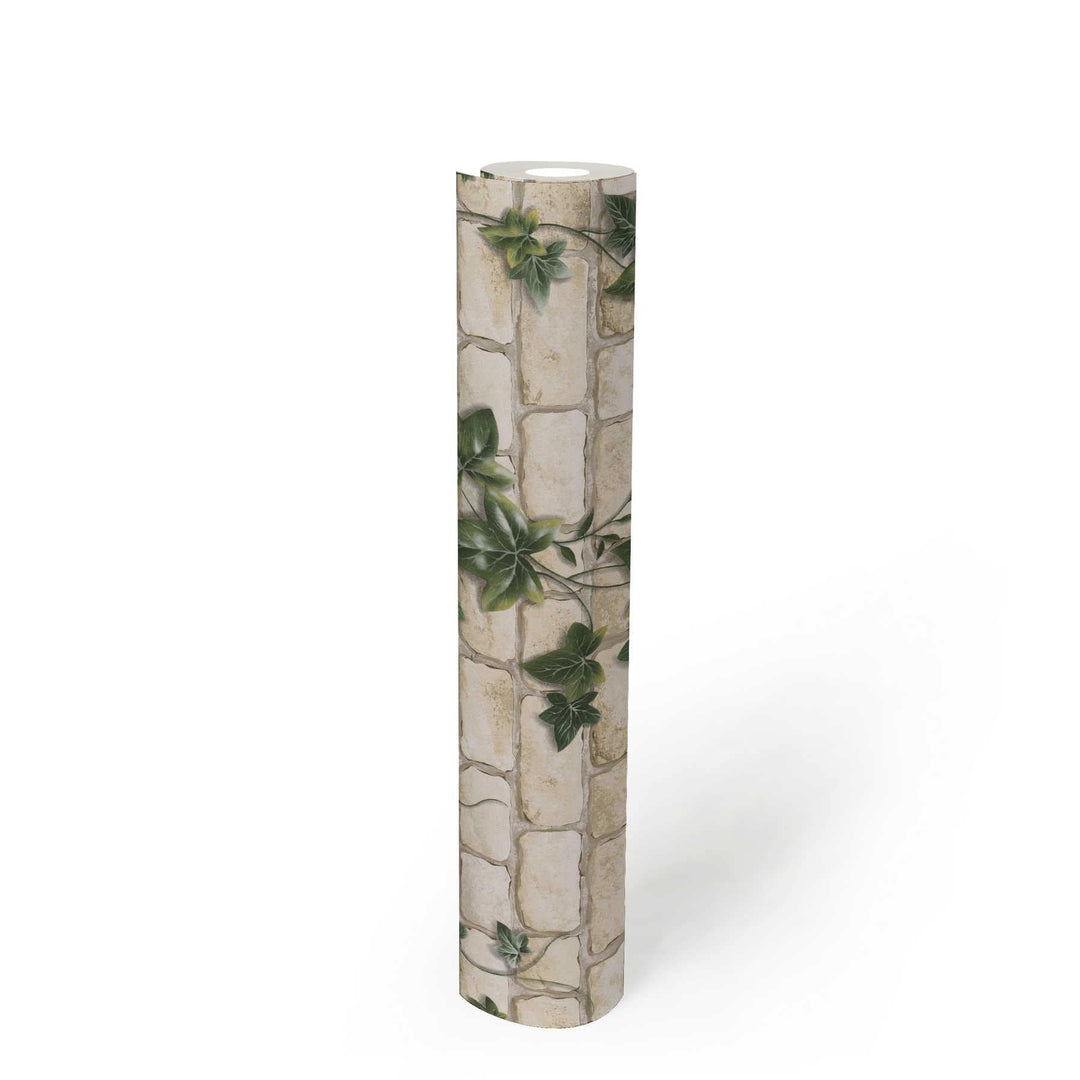 Pievienojiet dabas pieskārienu savai mājai ar šīm elegantajām tapetēm no AS Creation. Ideāli piemērotas vannas istabai vai virtuvei, šīs tapetes apvieno akmens sienas izskatu ar efejas rakstiem, radot mierīgu un stilīgu atmosfēru.