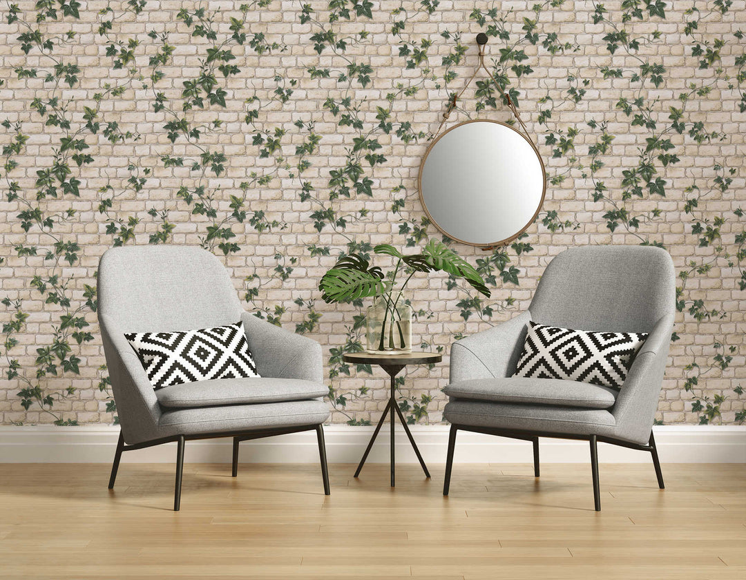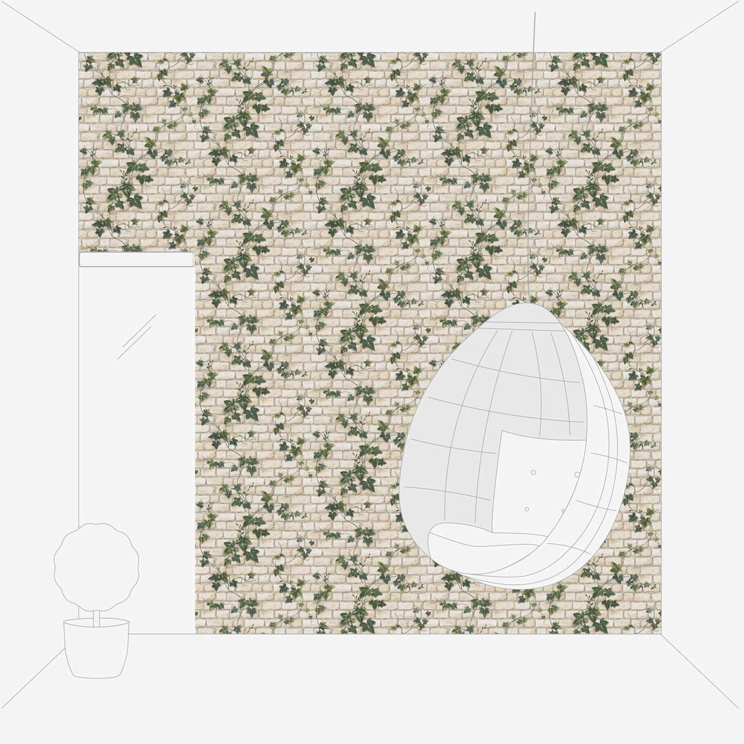 Attēlos redzamās tapetes rada siltu un aicinošu vidi, kas ir ideāli piemērota jebkuram mājas stilam. Efejas raksti piešķir sienām dzīvīgumu, savukārt akmens imitācija nodrošina mūsdienīgu un industriālu pieskārienu. Izvēlieties šīs tapetes, lai jūsu telpa kļūtu par patiesi īpašu vietu.