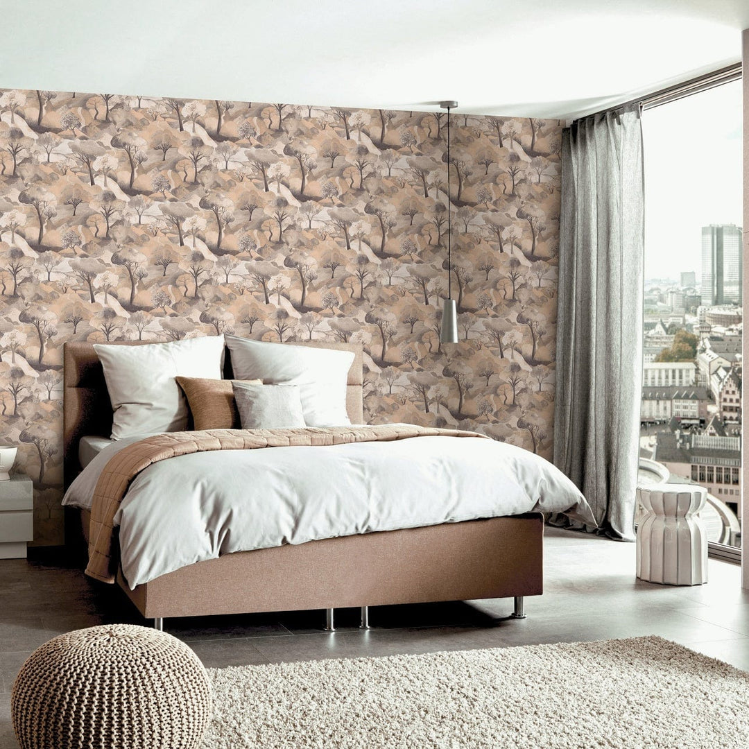 Šīs tapetes ir veidotas tā, lai radītu viendabīgu un plūstošu ainavu, un tās jebkurai telpai piešķir dziļumu, harmoniju un dabas pieskārienu. Nepārtrauktais koku motīvs pastiprina atvērtības sajūtu, padarot telpas gan plašas, gan aicinošas.