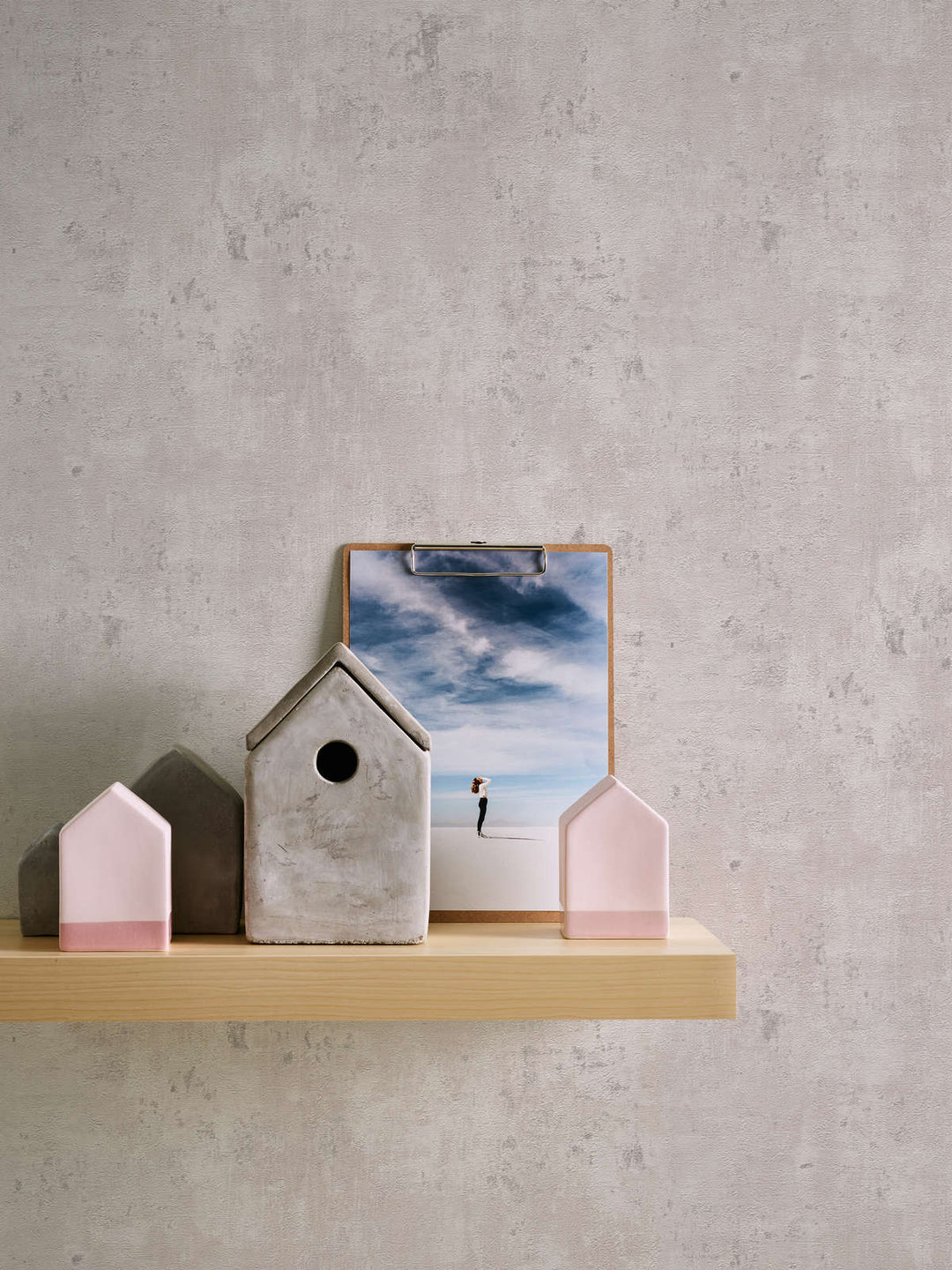 Tapetes ar metāliskiem akcentiem siltos pelēkos toņos, 1406642