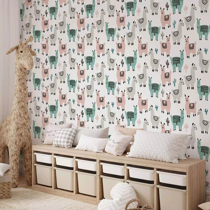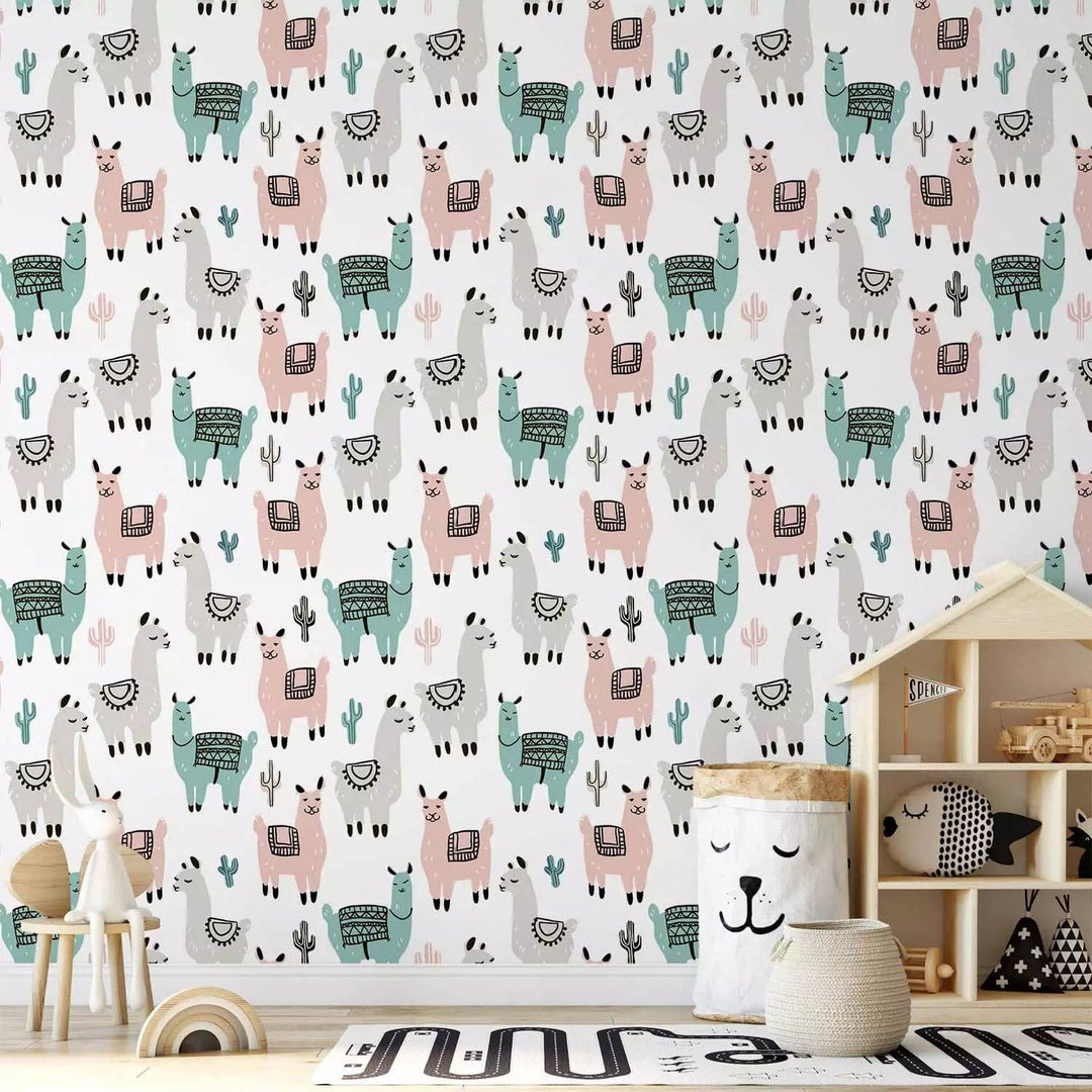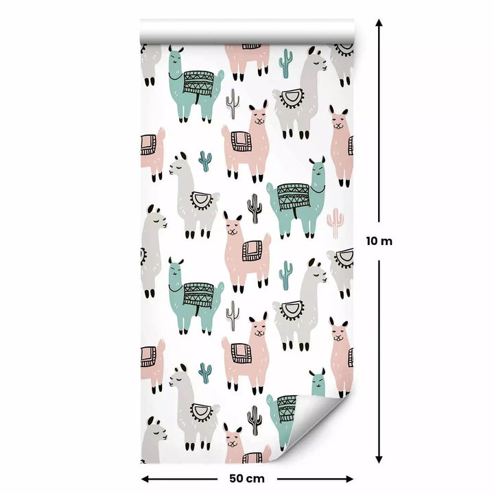 Tapetes bērnu istabai - Alpakas un kaktusi, 127182, (0,5x10m)