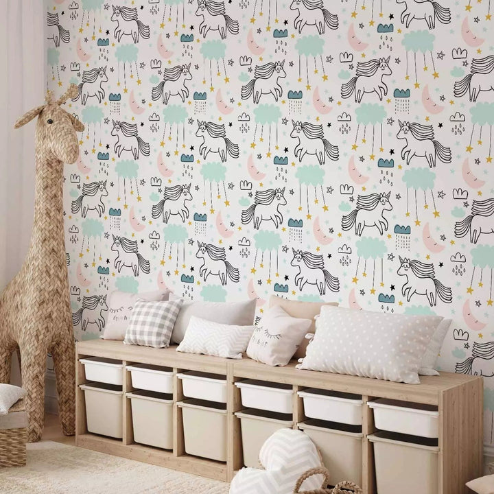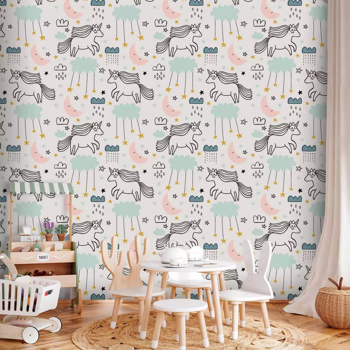 Tapetes bērnu istabai - Sapņaini vienradži, 129013, (0,5x10m)