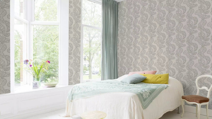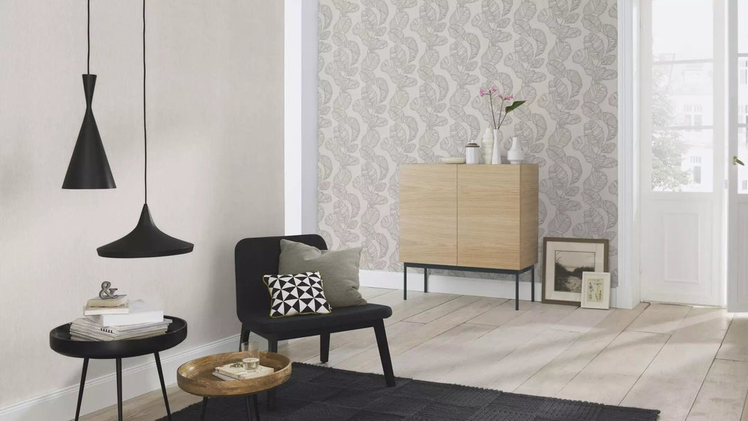 Tapetes RASCH - ar perlamutra lapu motīvu un nelielu tekstūru, taupe, 3106541