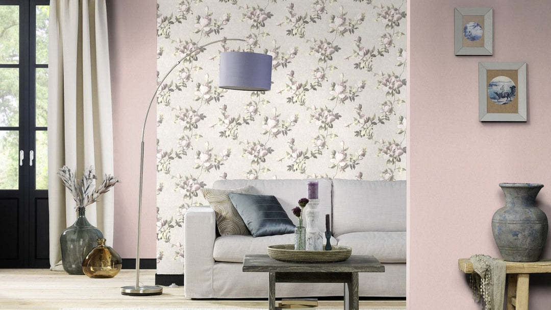 Rasch tapetes maigi rozā tonī ar smalku metālisku efektu piešķir eleganci un siltumu jebkurai telpai. Vienkāršais dizains ar mirdzuma nokrāsu rada izsmalcinātu, mūsdienīgu izskatu, kas pastiprina gaismu un piešķir sienām dziļumu.