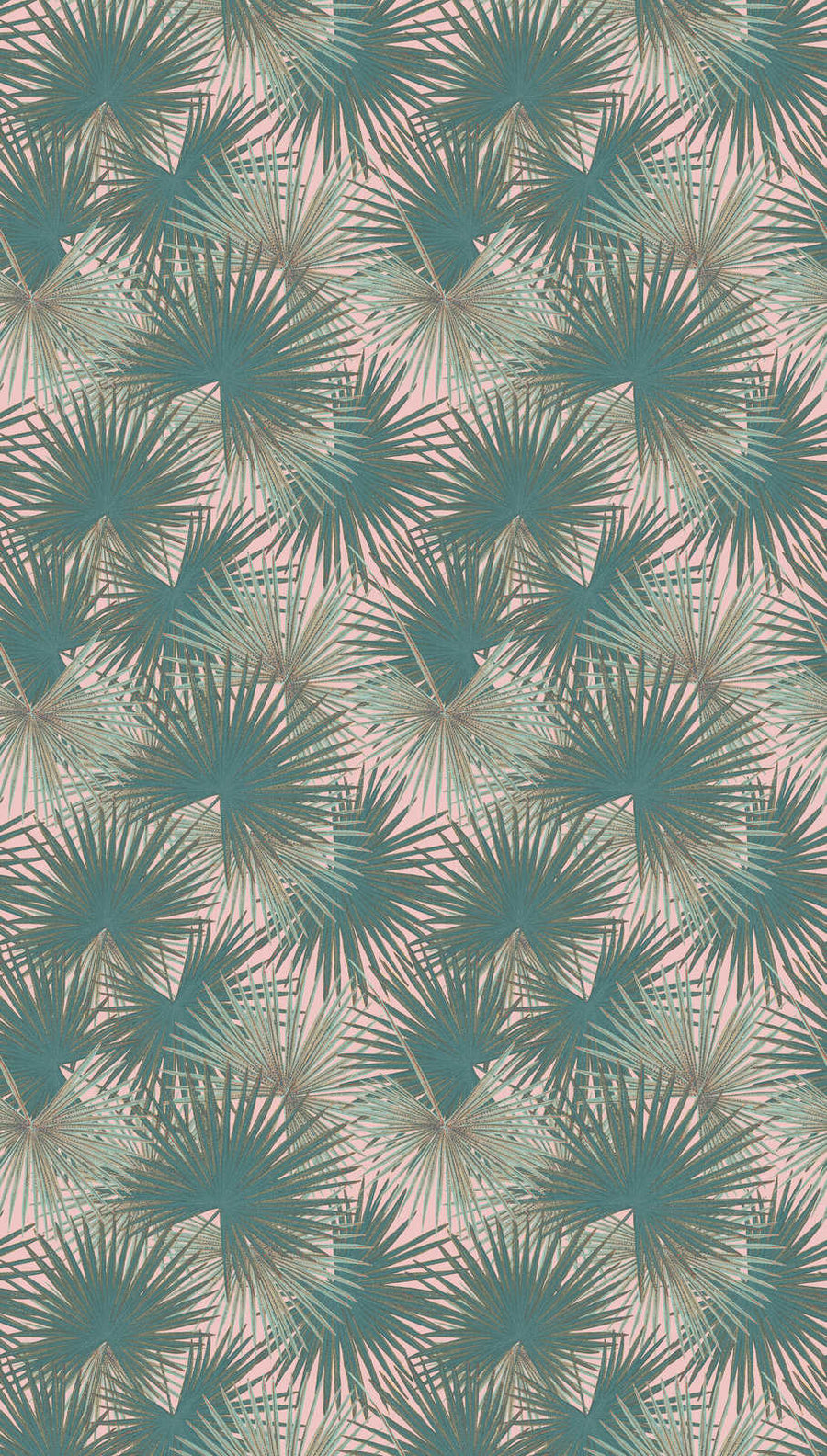 Flizelīna tapetes ar lielām lapām zaļos un rozā toņos, 1375244