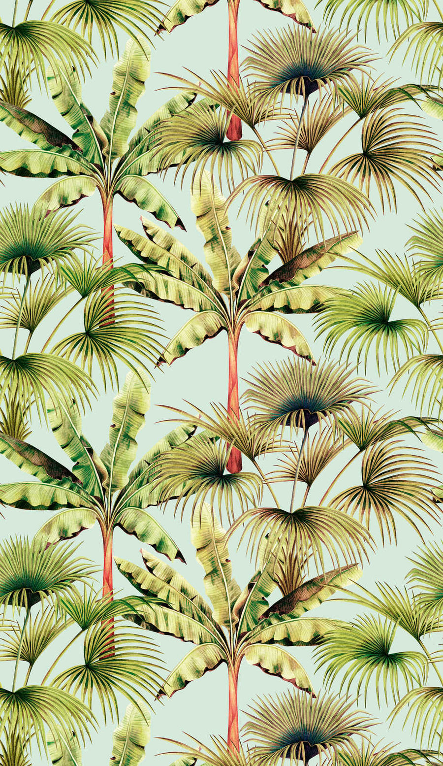 Krāsainas tapetes ar lapu rakstu un tropisku stilu, 1375227