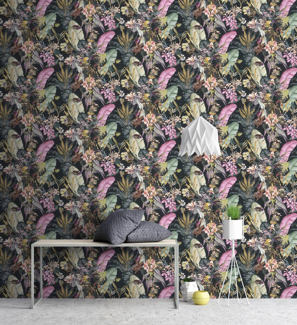Tapetes ar floru un faunu uz melna fona, AS Creation 1351501 AS Creation