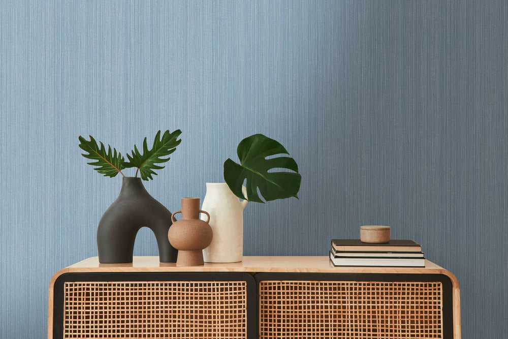 Tapetes ar tekstildizainu un līnijveida efektu zilā krāsā, 388192 AS Creation