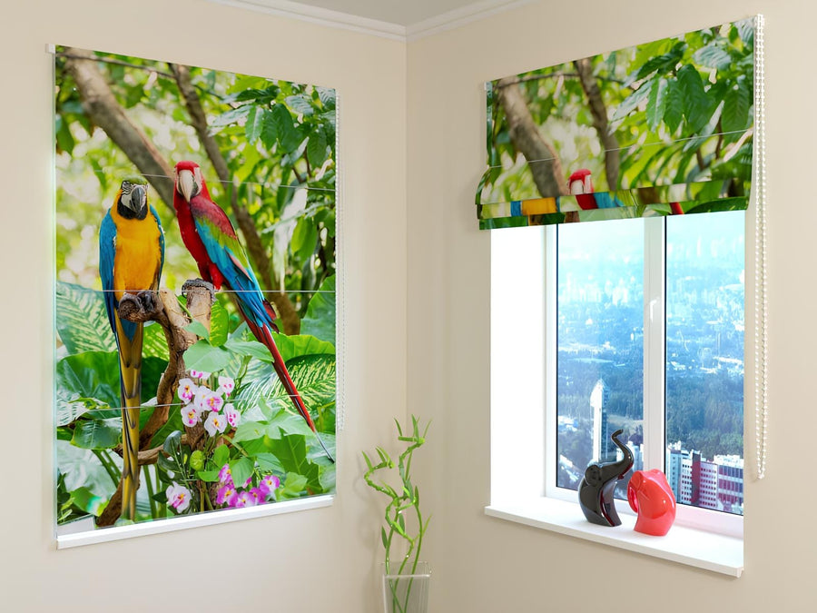 Žalūzijas ar papagaiļiem - Makao papagaiļi
