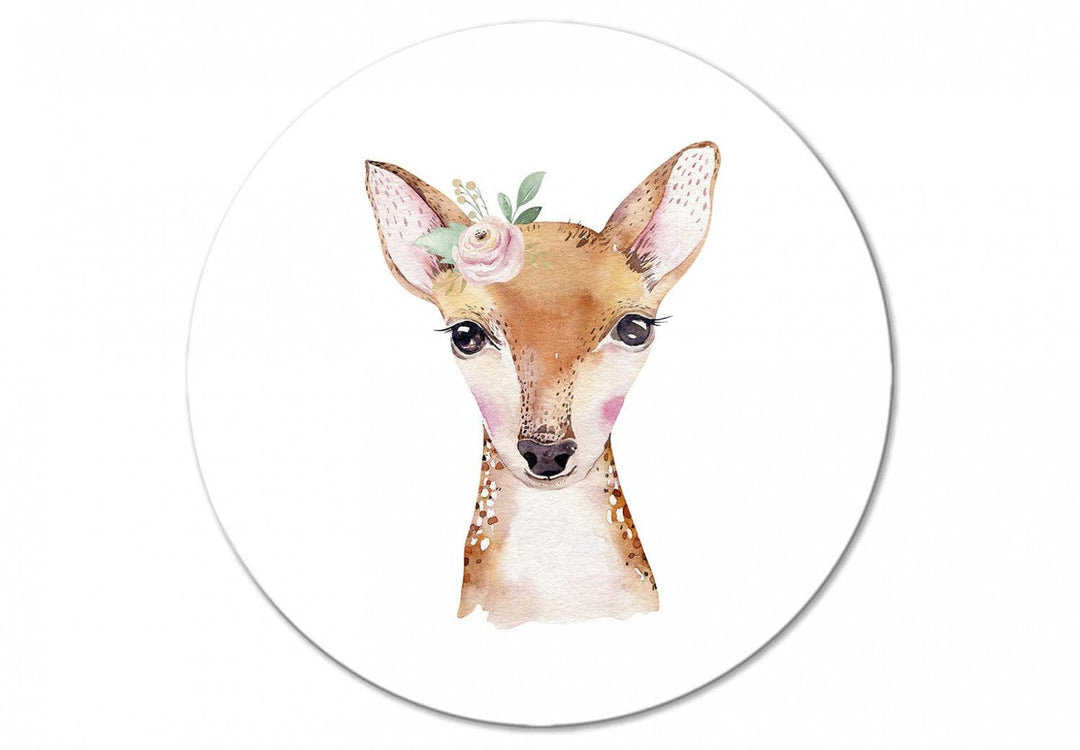 Apaļa kanva bērnistabai (Deluxe) - Smaidošs briedis ar mazu pušķi, 148668