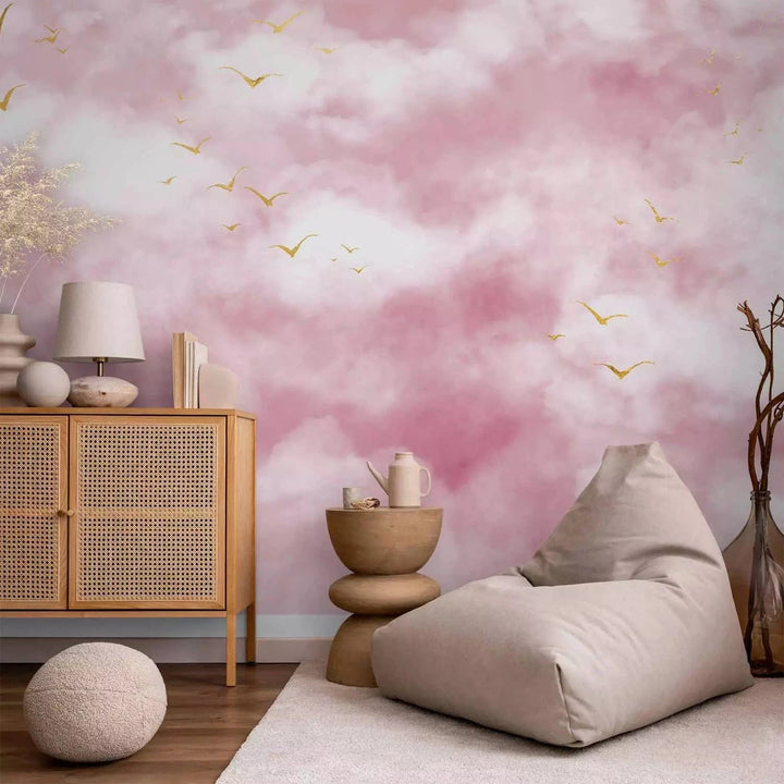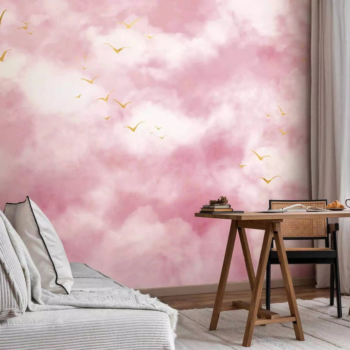 Fototapetes - Debesis virs meža rozā krāsā - 138253