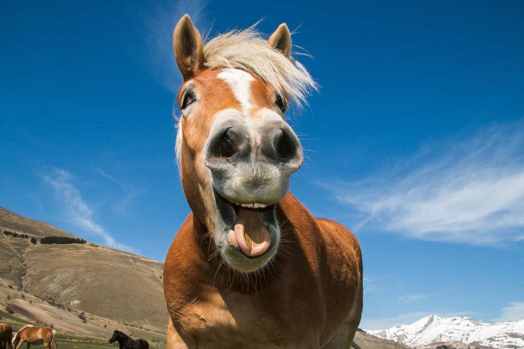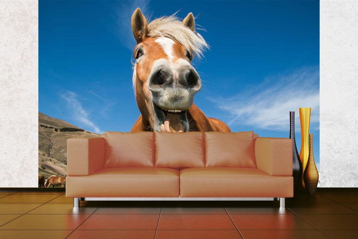 Šajā fototapetes attēlā ir ļoti reālistisks smieklīga zirga attēls. Fototapete ir uzdrukāta uz augstas kvalitātes, izturīgas pamatnes, lai jūsu mājoklī nodrošinātu spilgtu un noturīgu apdari. Radiet unikālu izskatu jebkurā telpā ar šo satriecošo fototapetes attēlu.