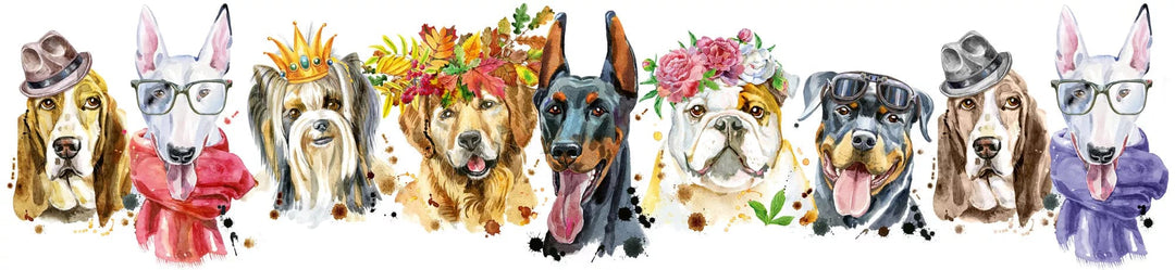 Fototapetes virtuvei ar lamināciju, pašlīmējošas plēve un flizelīns - Laimīgi suņi (260x60 cm)