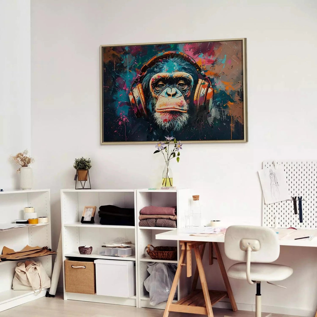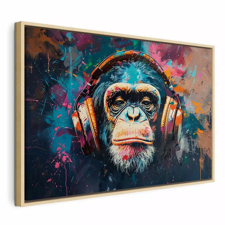 Glezna koka rāmī (dabīgā krāsā) - Pērtiķis austiņās, 162538