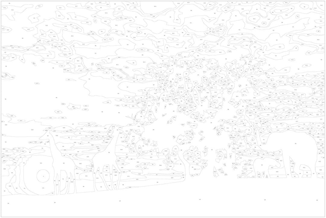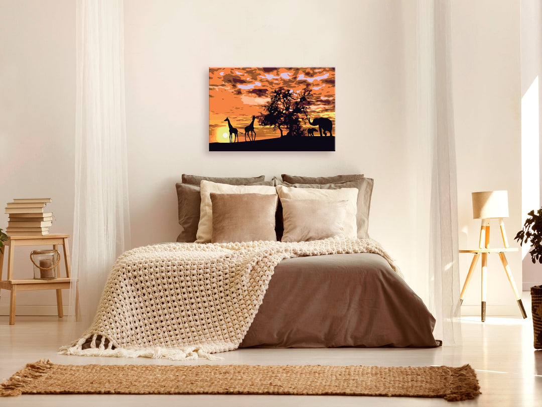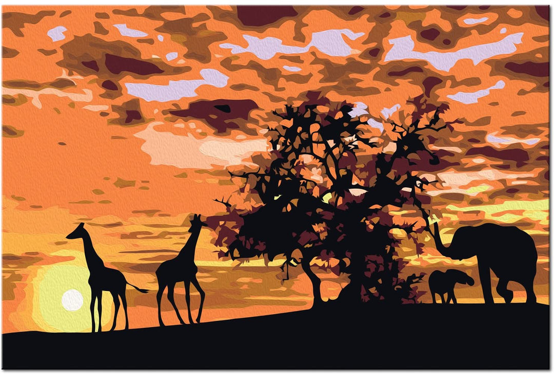 Kanva uz audekla "izkrāso pēc cipariem" - Savanna (žirafes un ziloņi) 50x40 cm