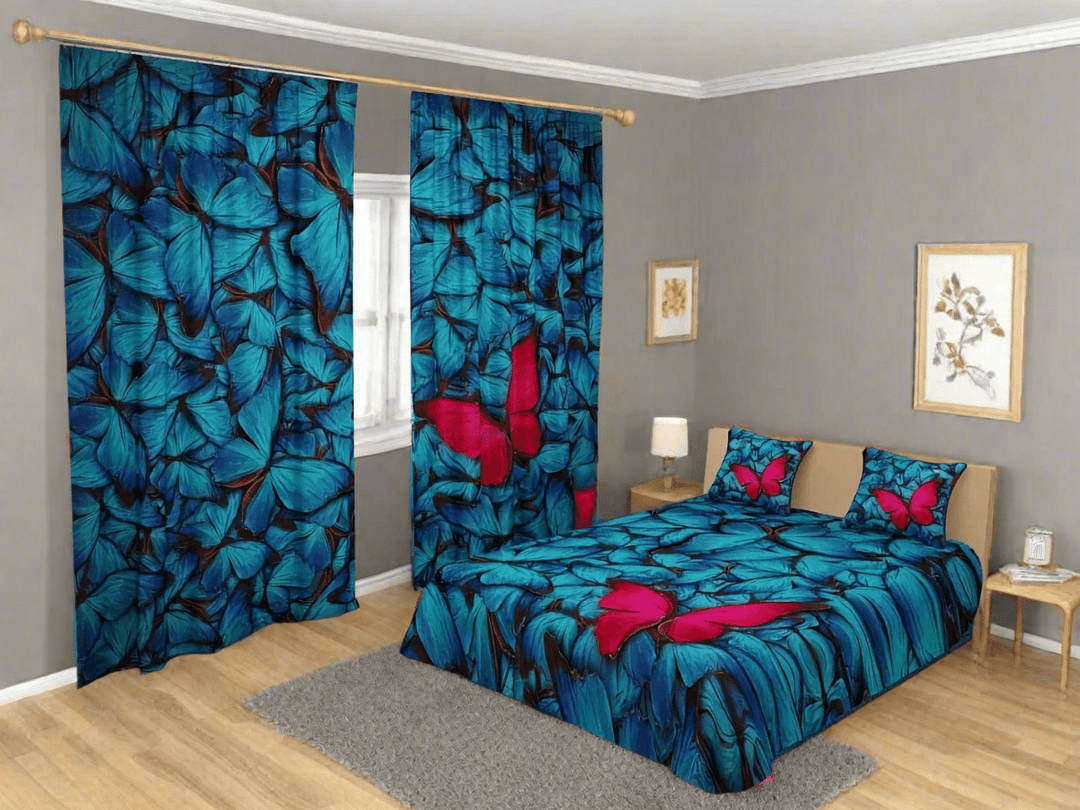 Gultas pārklājs ar ziliem taureņiem
