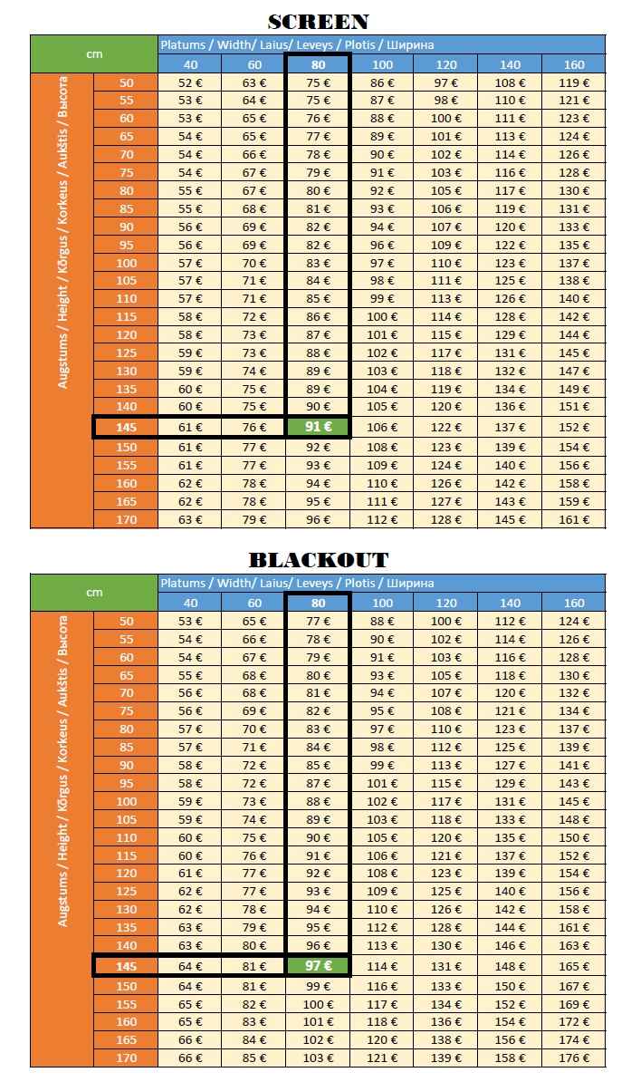 Ja sarakstā Jūs nevarat atrast vēlamo izmēru , lūdzam sazināties ar mums, izmantojot šo saziņas formu un norādot vēlamo izmēru un produktu.