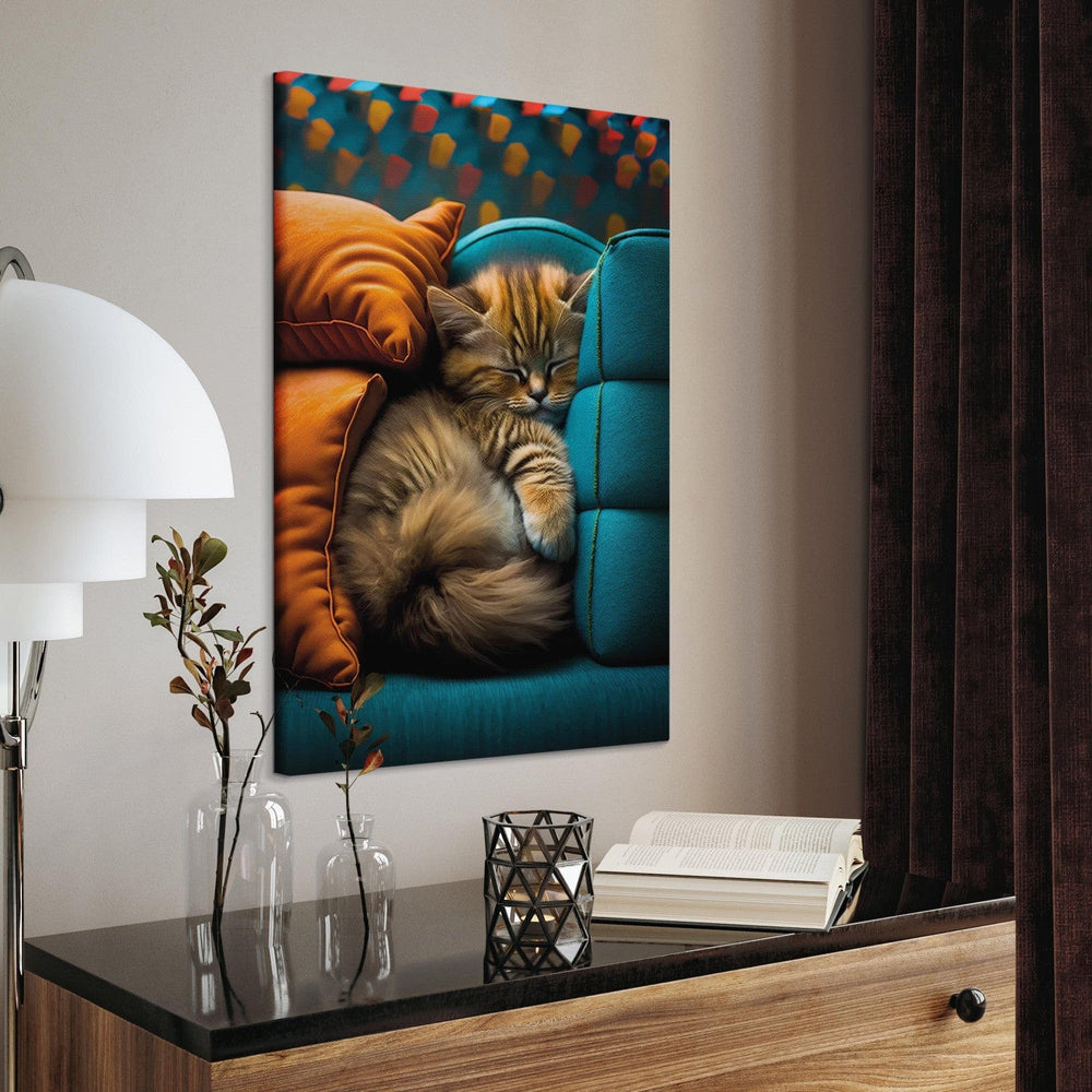 Kanva - Jauks kaķis guļ starp mīkstiem spilveniem, 150109