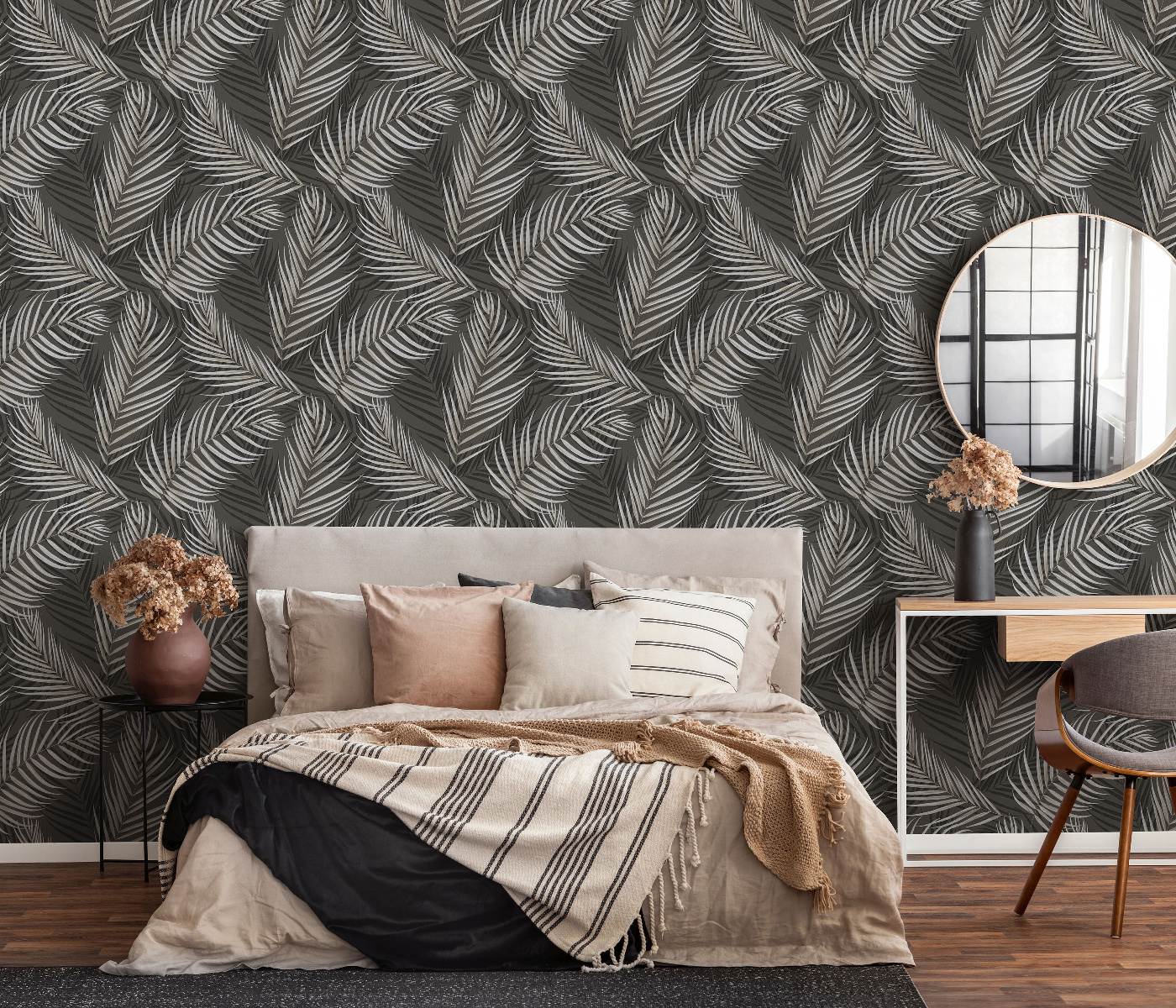 Tapetes ar tropiskam lapām, tūmši brūnā krāsā, 3714243