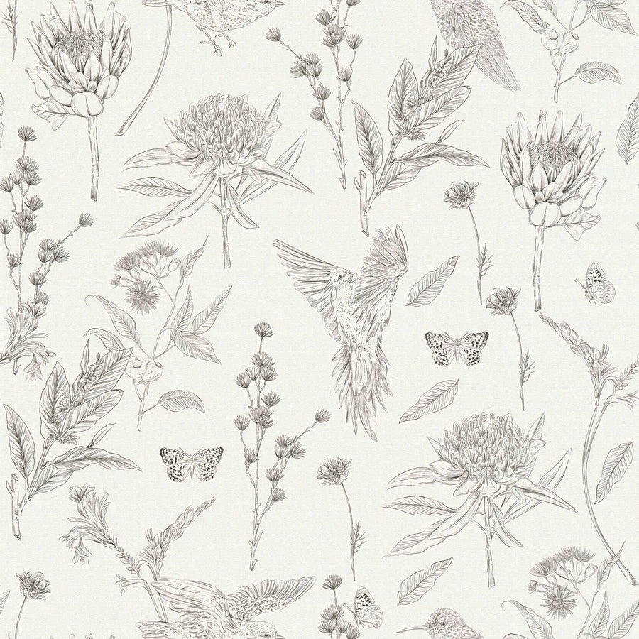 Ziedu tapetes ar ziediem un putniem: melnbaltas, 394292 AS Creation