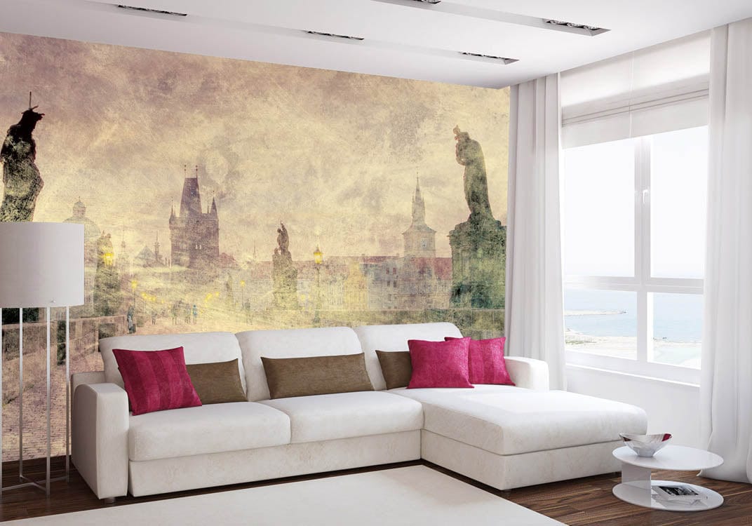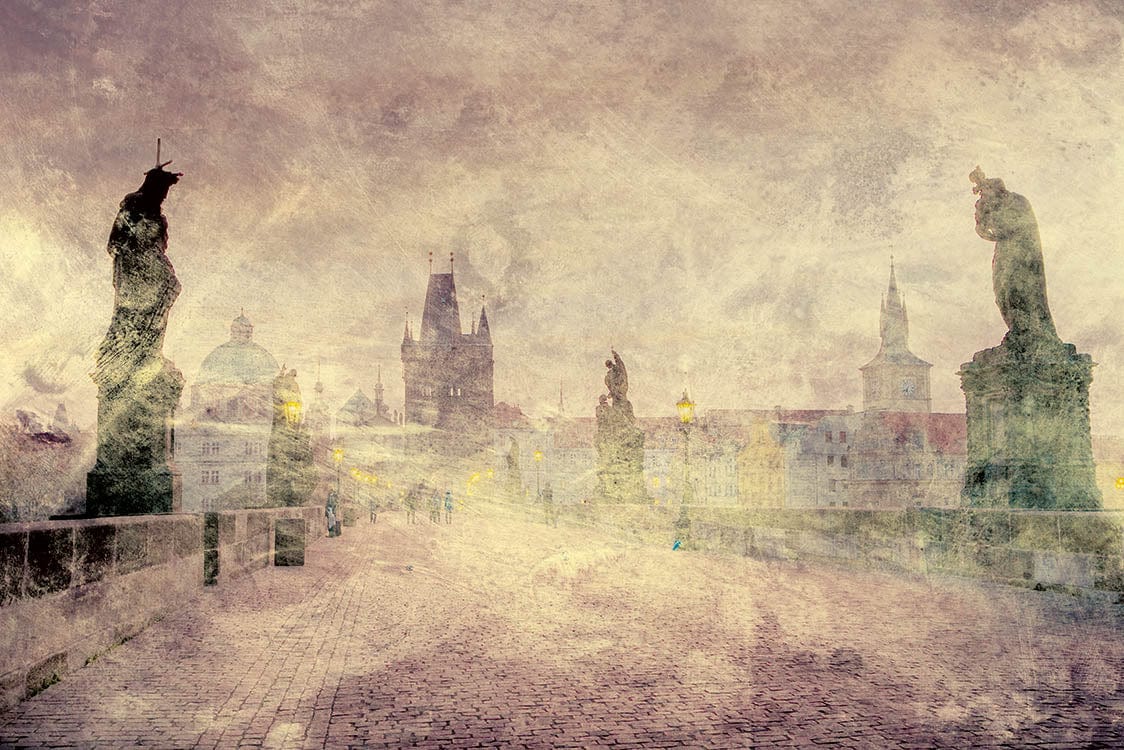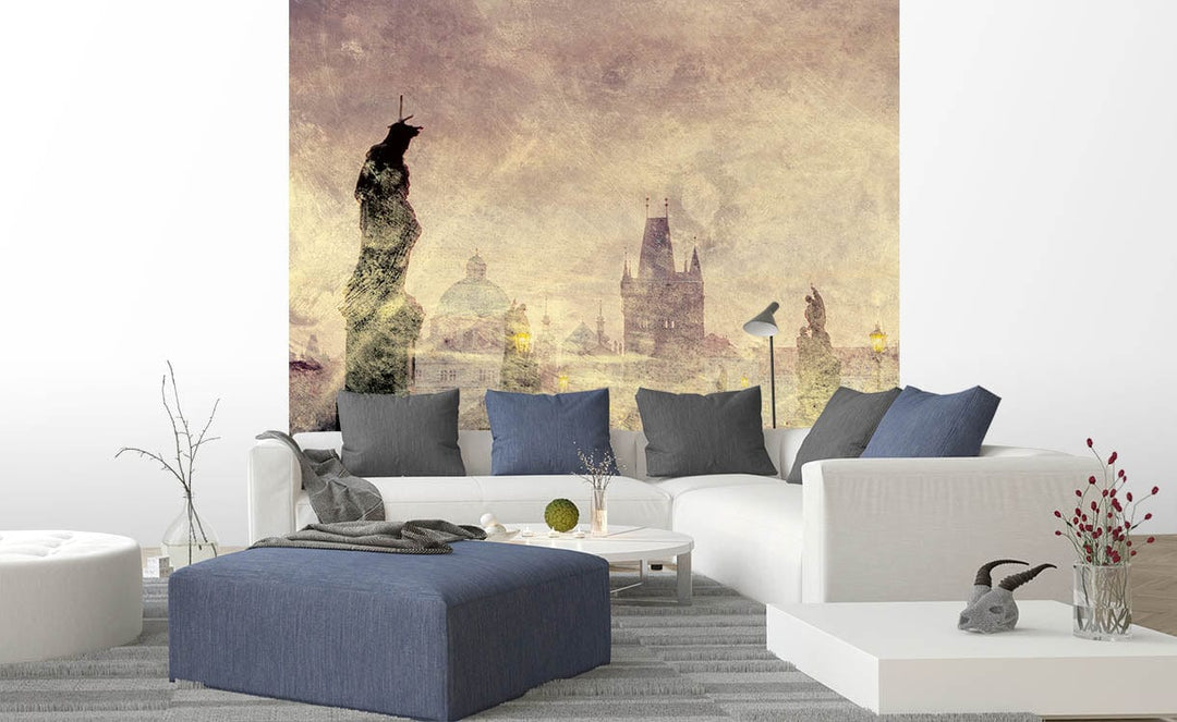 Paplašiniet savas sienas ar šīm foto tapetēm. Uz fototapetes ir attēlots Kārļa tilts tumšā vaniļas tonī, radot unikālu un elegantu dizainu. Izbaudiet izsmalcināti detalizētu tapetes dizainu, kas lieliski piemērots jebkurai sienai.