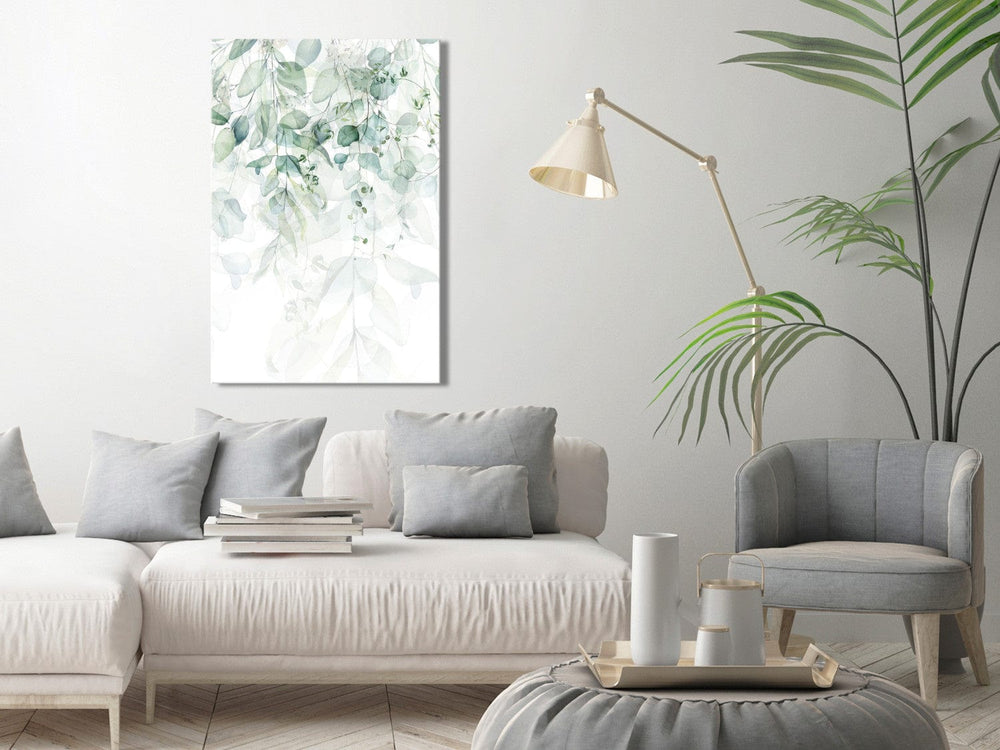 Glezna, vertikāla - Maigs dabas pieskāriens - zaļo lapu ainava G-ART