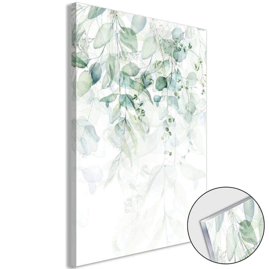Glezna uz akrila stikla ar zaļām lapām - Maigs dabas pieskāriens Artgeist