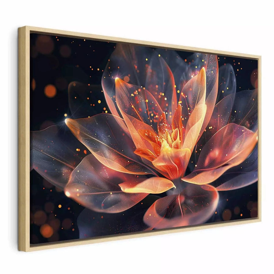Glezna koka rāmī (dabīgā krāsā) - Glamūrs zieds uz tumša fona, premium G ART