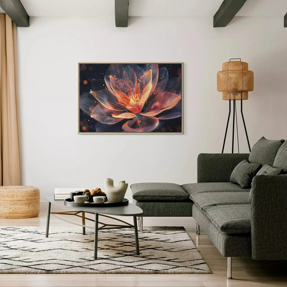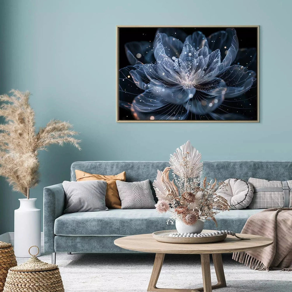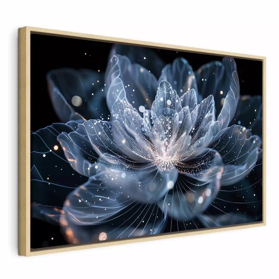 Glezna melnā koka rāmī - glamūra stila zieds uz tumša fona, premium G ART