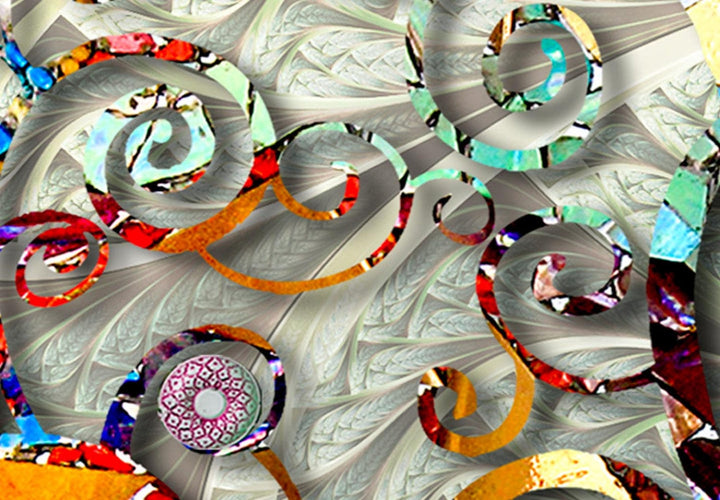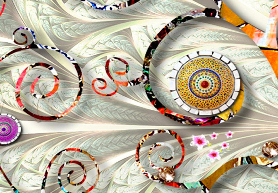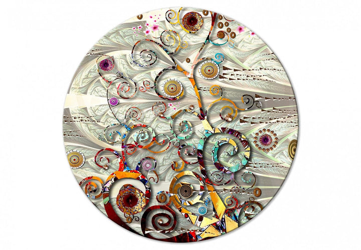 Apaļa kanva (Deluxe) - Dzīvības koks - abstraktie elementi Gustava Klimta stilā, 148752