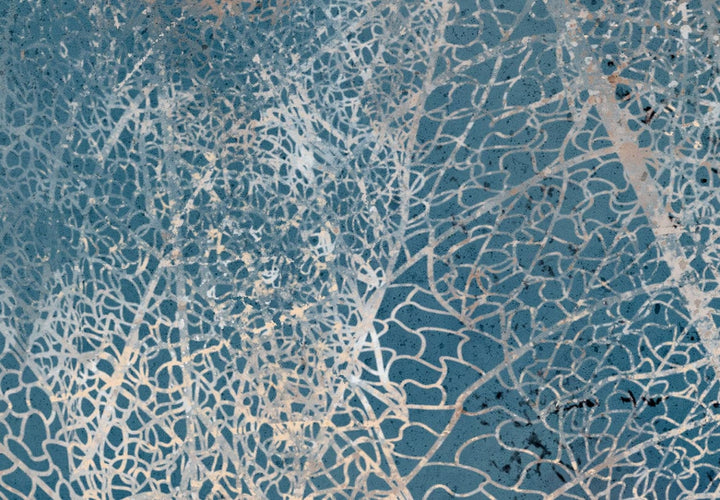 Apaļa kanva (Deluxe) - Zelta lapu dzīslas uz zila fona, 148709