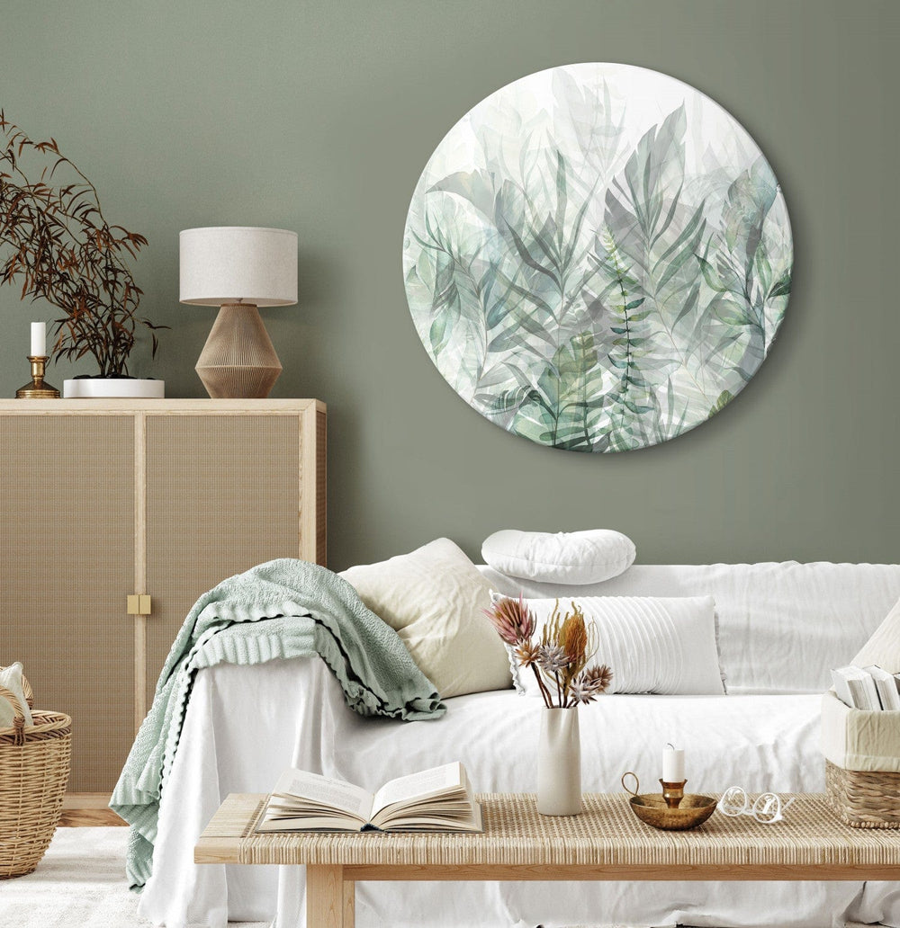 Apaļa formāta glezna - Ainava ar zaļām lapām - 148671 G-ART