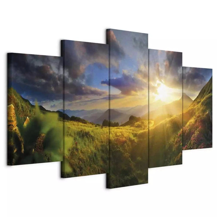Kanva ar saullēktг kalnos - Rīta eiforija, (x5), 92118 - zaļā, zilā G-ART